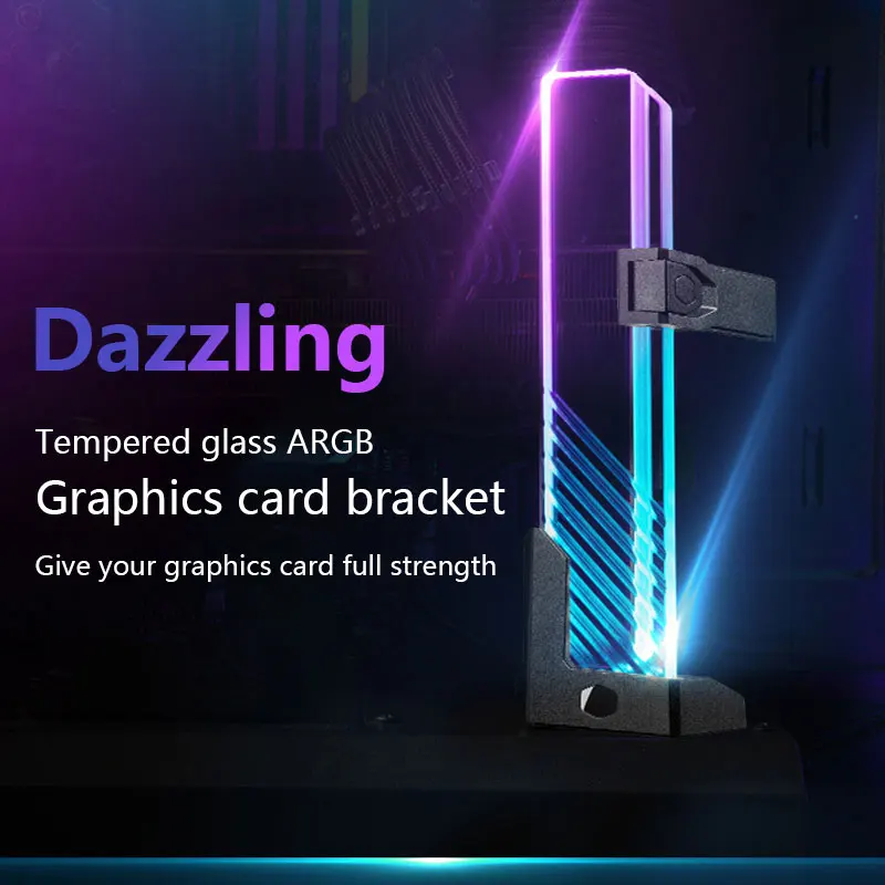 El soporte de tarjeta gráfica Xuanjing ARGB está hecho de material de vidrio templado de alta calidad, con líneas de procesamiento CNC en la superficie, que complementa el efecto de luz ARGB, brindando una magnífica fiesta visual.
