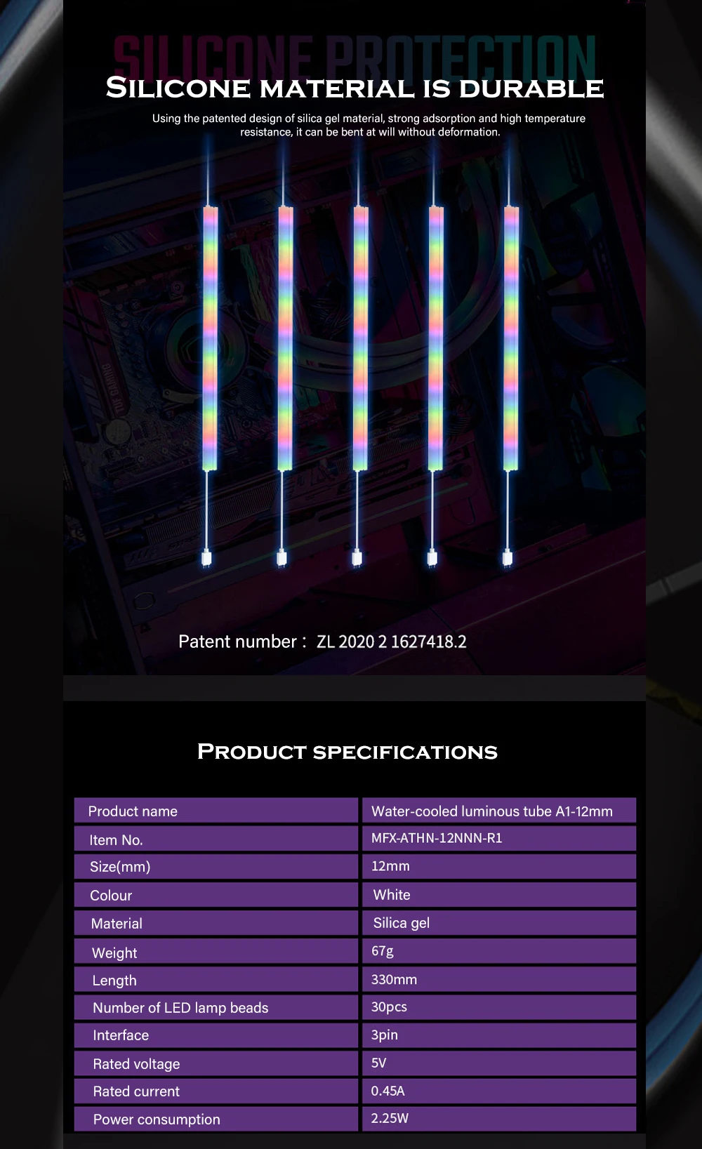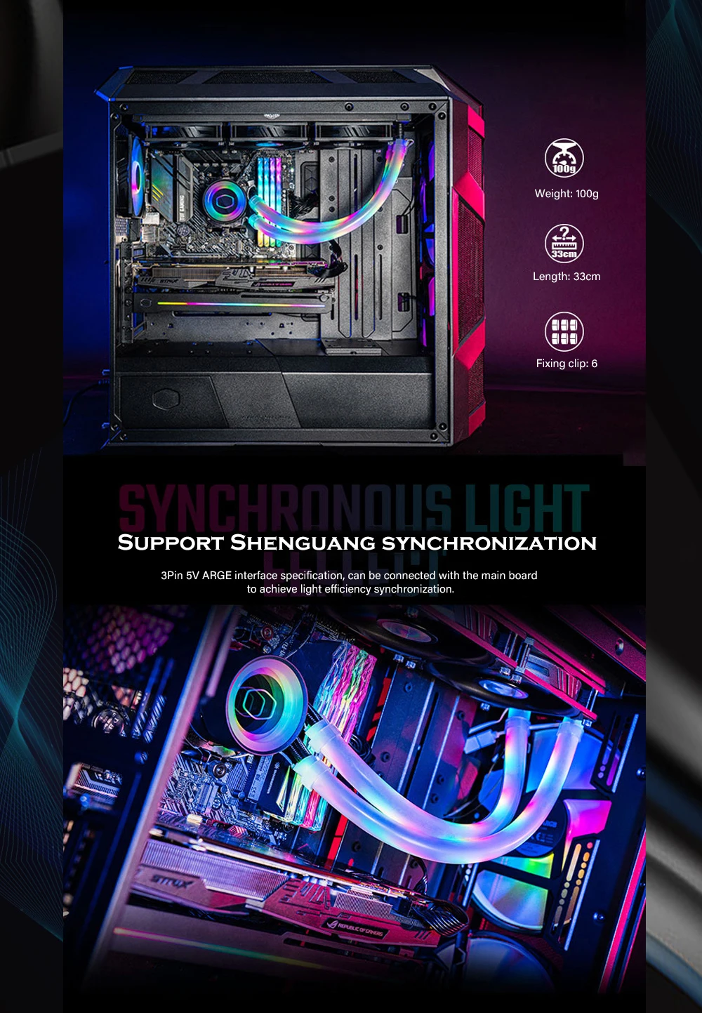 Cooler Master-tubo emisor de luz de refrigeración por agua, sistema de refrigeración de neón para CPU 240 360 GPU AIO 5V ARGB AURA SYNC A1-12MM/10MM 330mm