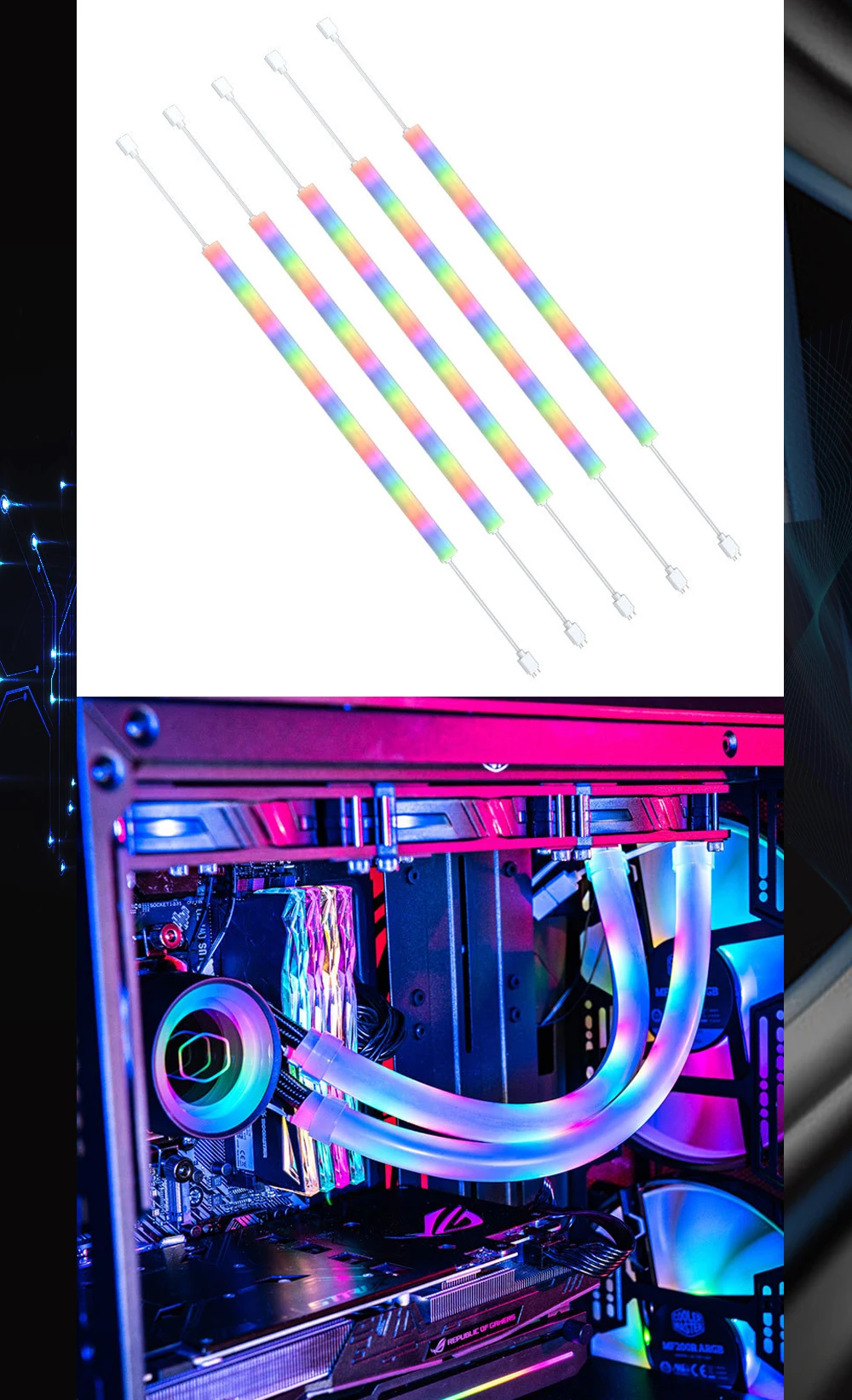 Comprar Cooler Master-tubo emisor de luz de refrigeración por agua, sistema de refrigeración de neón para CPU 240 360 GPU AIO 5V ARGB AURA SYNC A1-12MM/10MM 330mm