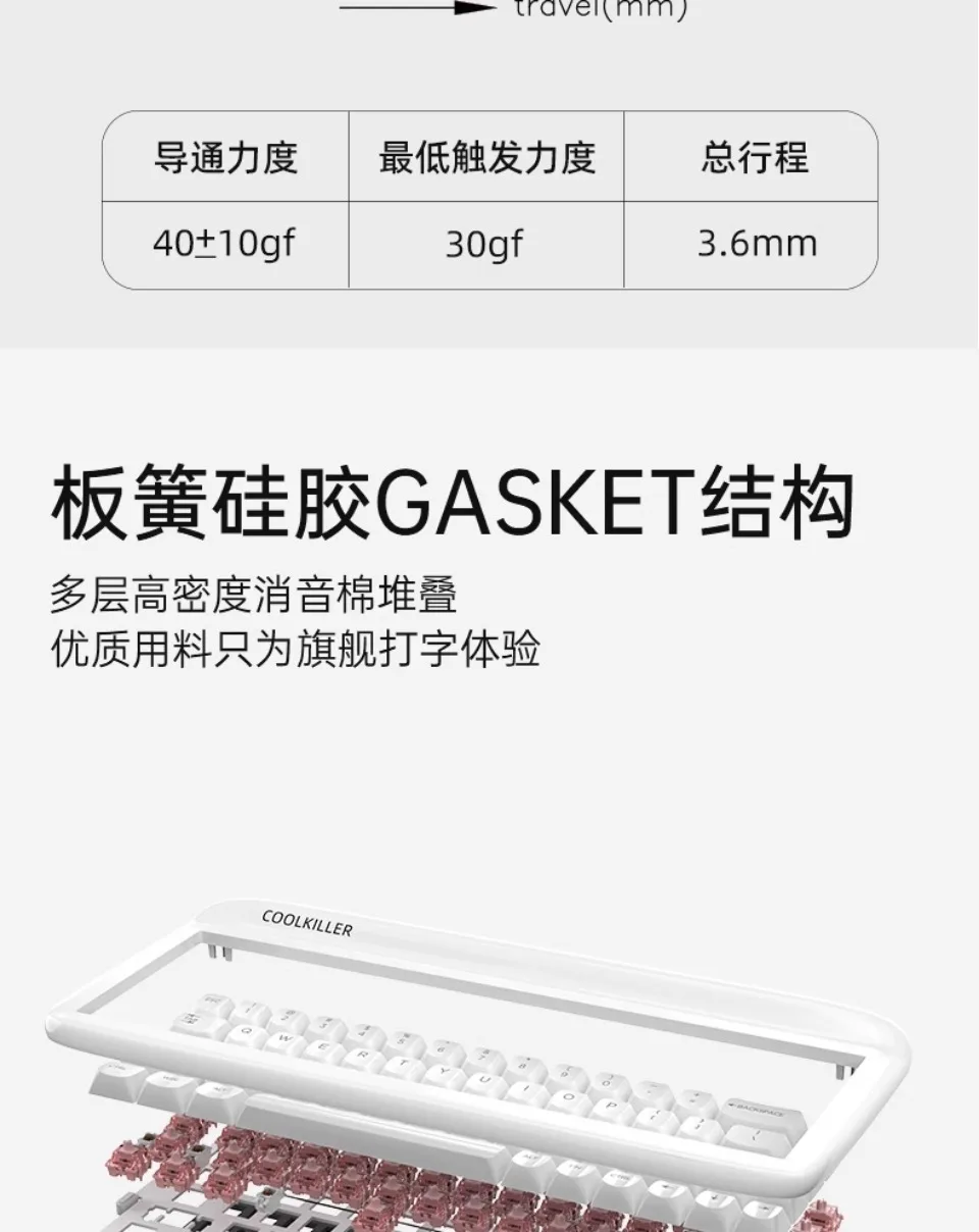 2.Five internal silencing support, effectively fill the internal space, with an all-aluminum shell and plate spring GASKET structure and the limit of slotted PC + PCB, to further enhance the input experience and key performance, to create the flagship HIFI key sound.