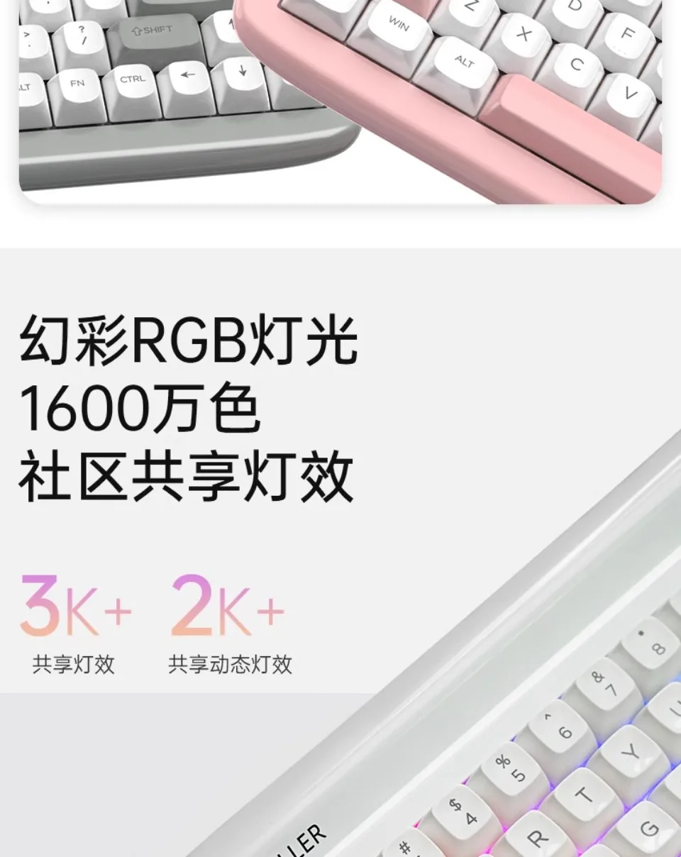 5.Phantom RGB lighting, 16 million colors, community shared light effects.Color-coded high-gloss keycaps, dirt-resistant and not easy to leave fingerprints, durable characters