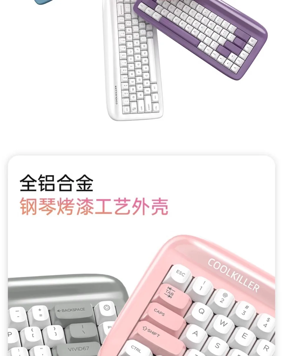 Coolkiller VIVID67 Mechanical Keyboard Wireless Tri-mode Gasket Hot-Swap RGB Custom Cute Girl Aluminum Office Gaming Keyboard