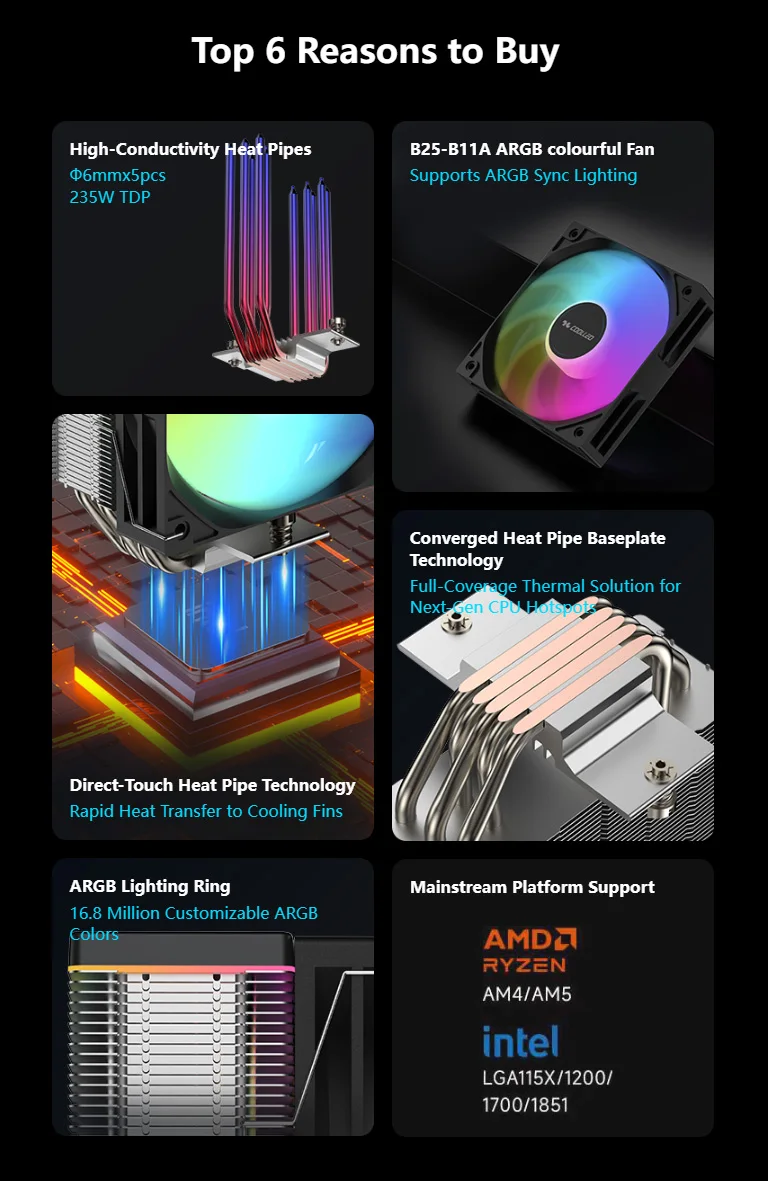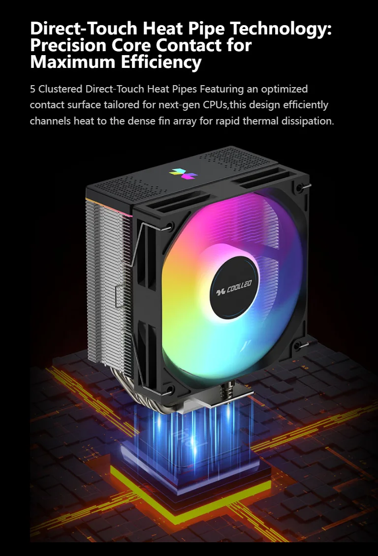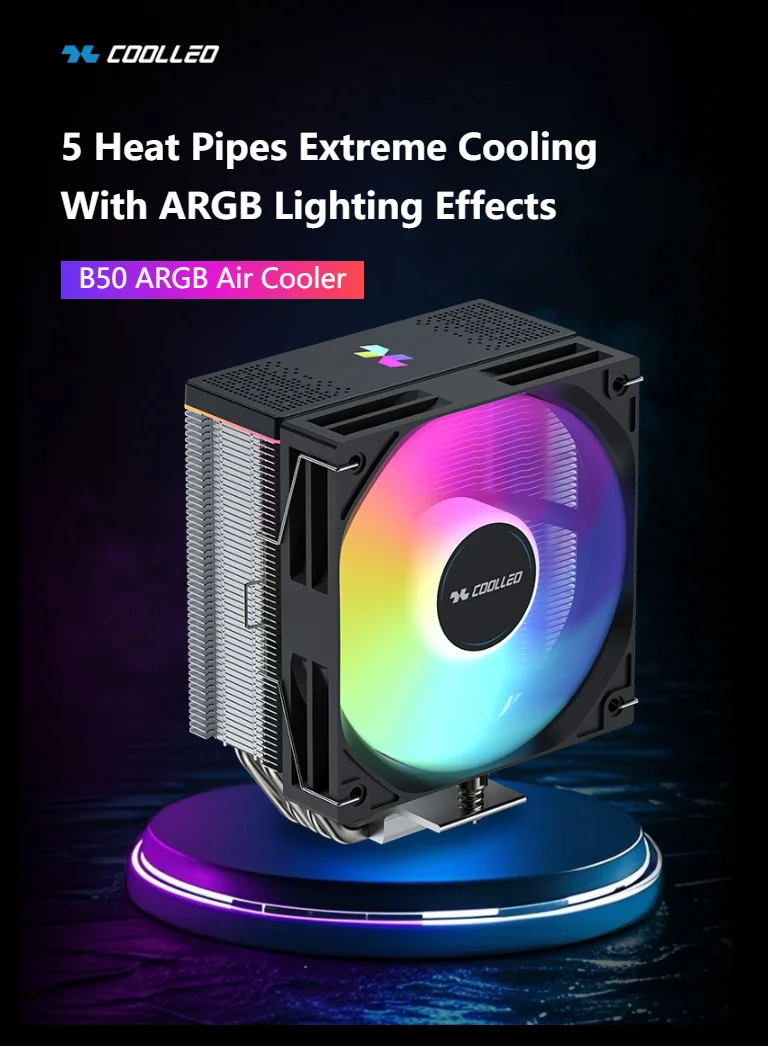 Comprar COOLLEO B50 5 tubo de calor CPU enfriador de aire ARGB 4Pin PWM PC ventilador de radiador silencioso TDP 235W refrigerado por aire Intel LGA115X 1200 1700 1851 AM5