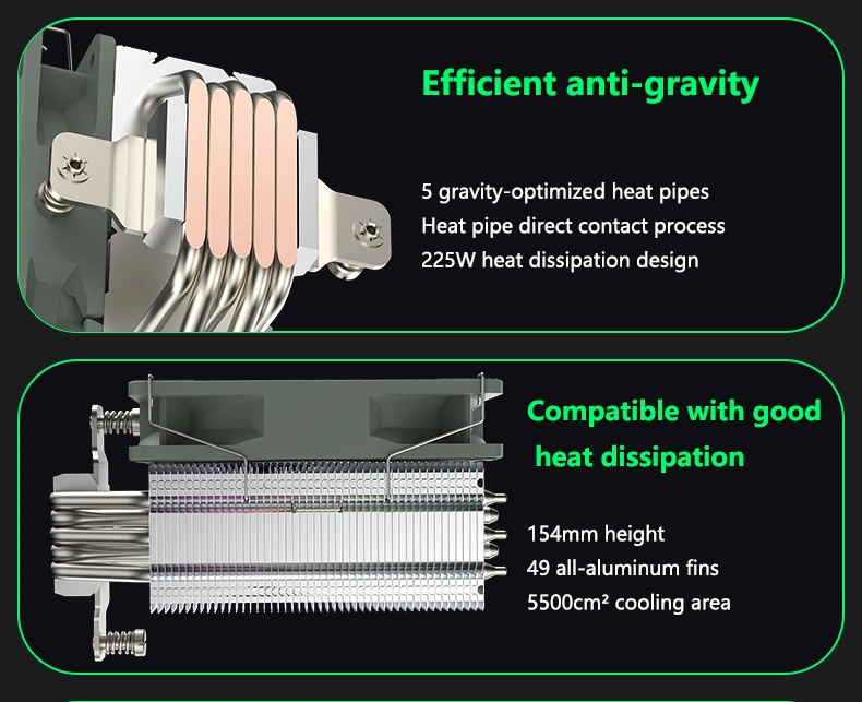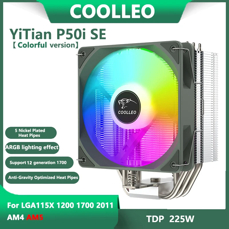 Comprar COOLLEO-enfriador de CPU P50i SE, 5 tubos de calor, radiador refrigerado por aire para PC, ARGB, ventilador de refrigeración silencioso para Intel LGA1700 1200 2011 115X AM4 AM5