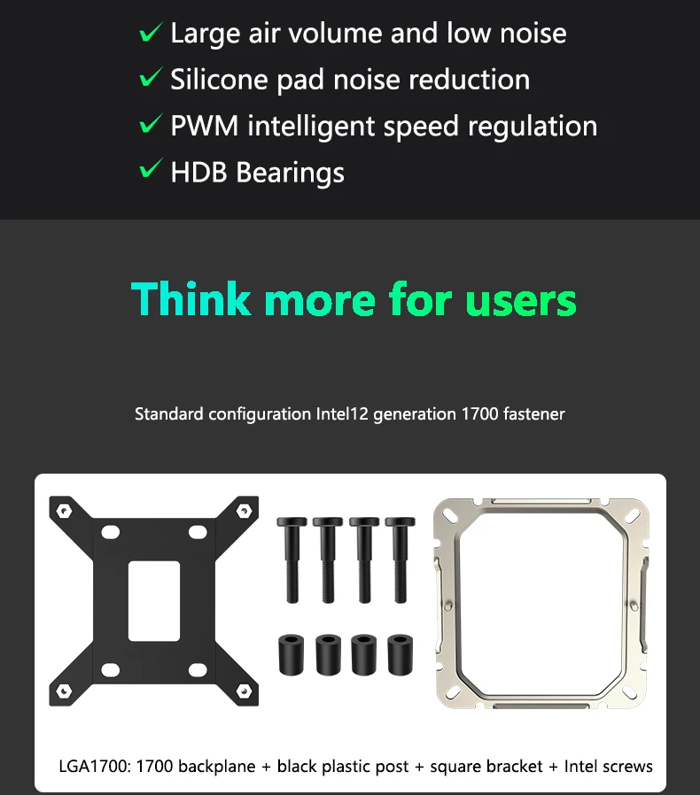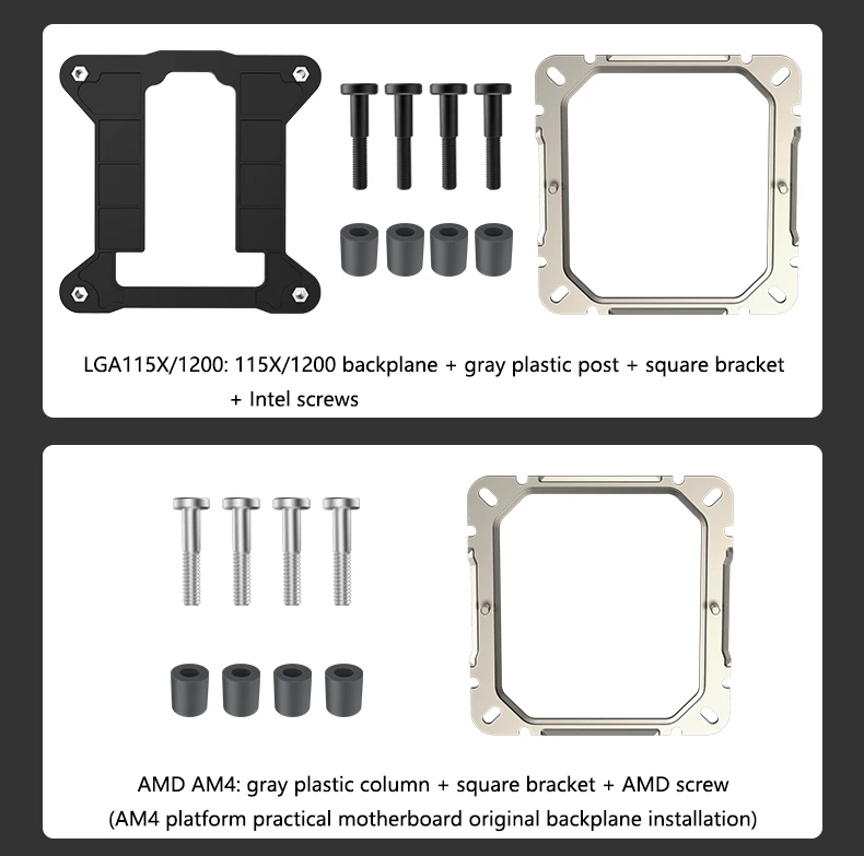 Plataforma de soporte: Intel LGA1200/115X/1700/2011 (nota: LGA2011 necesita comprar "perno con 2011") AMD AM4/AM5
