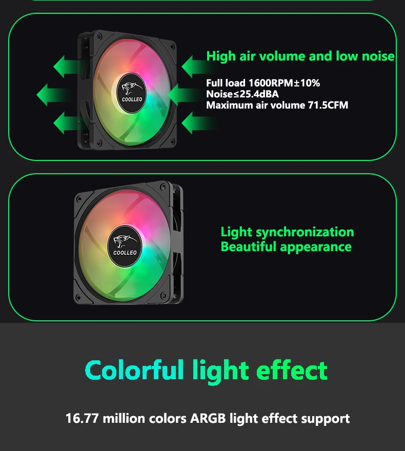 Comprar COOLLEO-ventilador de carcasa de ordenador Hurricane S120, ventilador de chasis ARGB de 120mm, 5V, 3 pines, radiador, 4 pines, PWM, CPU