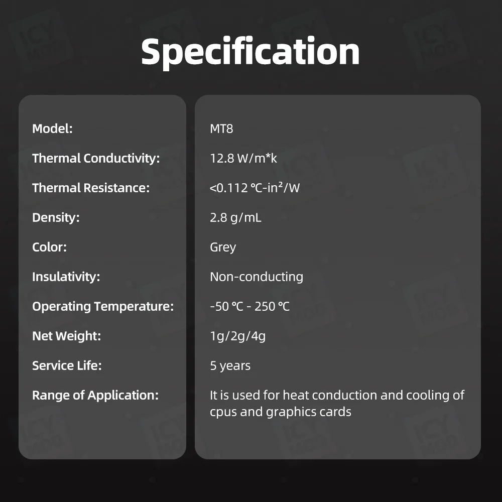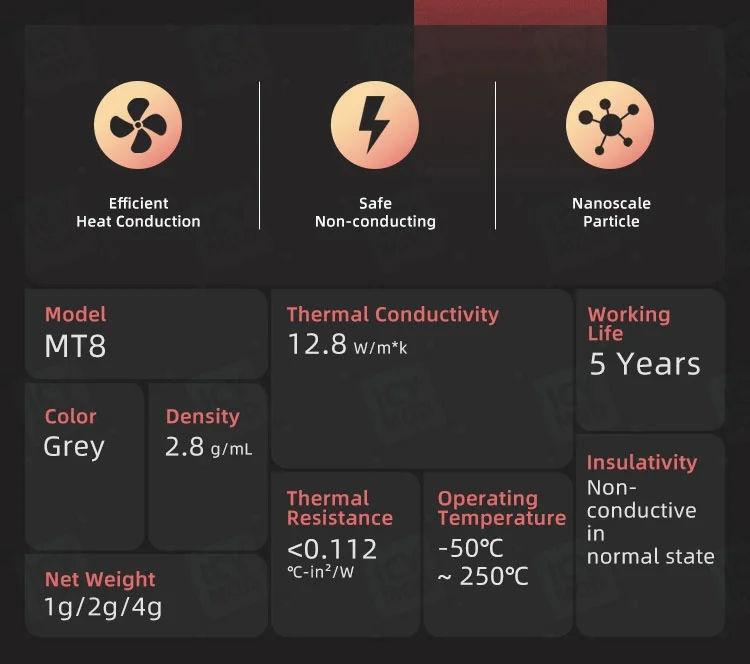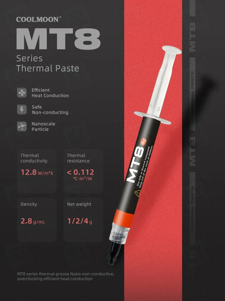 Comprar Coolmoon 12,8 W/m * k pasta térmica MT8 1g Nano partículas CPU/GPU grasa de alto rendimiento disipación de calor duradera