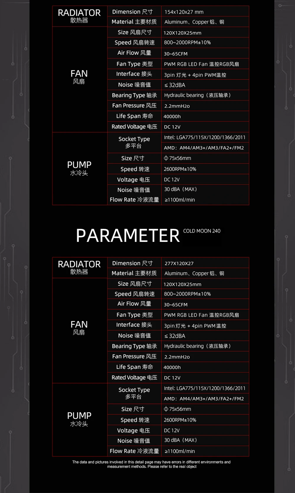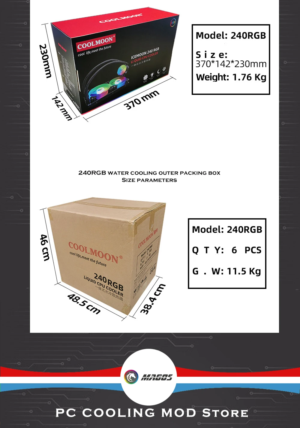 CoolMoon AM5 CPU 240 Enfriador de agua AIO Kit de enfriamiento 1700 Soporte AMD/Intel 5V MB ARGB SYNC
