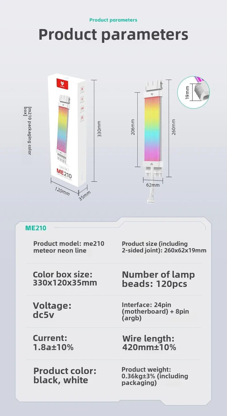 4.La línea de neón es una interfaz de luz de 8p, quedebe usarse con el controlador patentado de COOLMOON