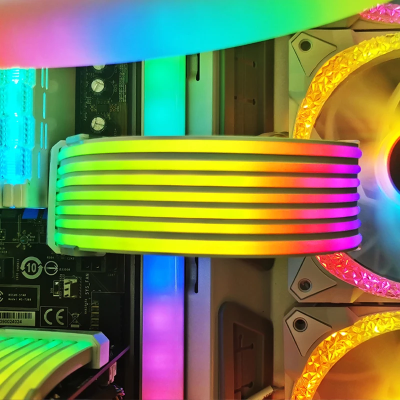 5. La expansión multiinterfaz es más conveniente:5V 3PIN * 2 + 4PIN, el cable alargado hace que el cableado sea más libre de preocupaciones, el blanco simple es el color principal actual, la interfaz múltiple hace que la conexión, la instalación y la expansión sean más convenientes, y mejora en gran medida la compatibilidad del producto; cable alargado, para apoyar la línea trasera. Viene con instrucciones y Accesorios de instalación, que se pueden fijar con bridas o cinta de doble cara, lo que facilita la instalación y el uso. Cinta de encuadernación incorporada, sin cable de extensión, directamente atada al cable de la tarjeta gráfica/cable de la placa base, ampliamente utilizada.
