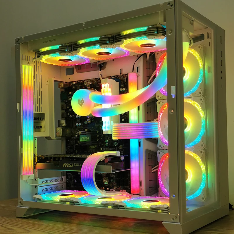 4. 5V ARGB Aura Sync:Admite la interfaz ARGB direccionable de segunda generación de placas base como ASUS / MSI / Gigabyte / ASRock, etc., controla la iluminación a través del software y personaliza mediante programación 16,8 millones de colores.