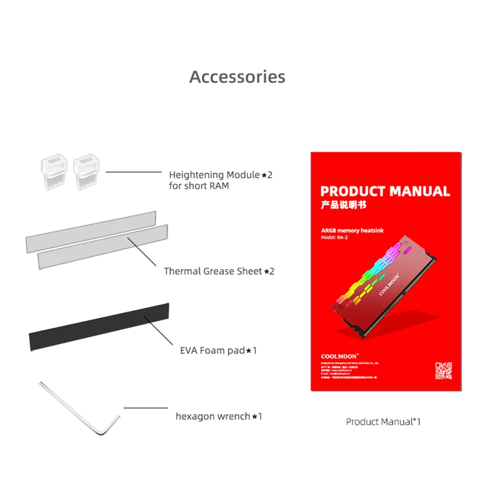 COOLMOON RA-2 banco de memoria RAM enfriador de disipador de calor ARGB colorido esparcidor de calor intermitente para accesorios de ordenador de escritorio