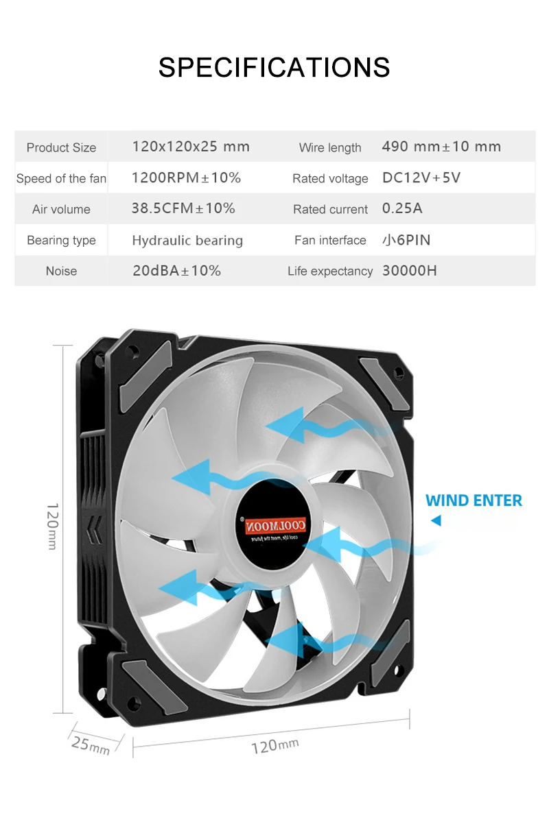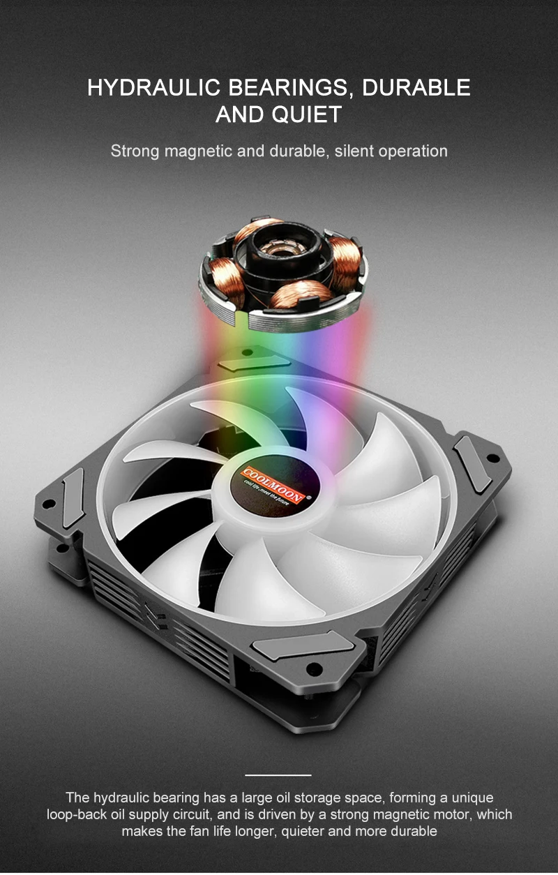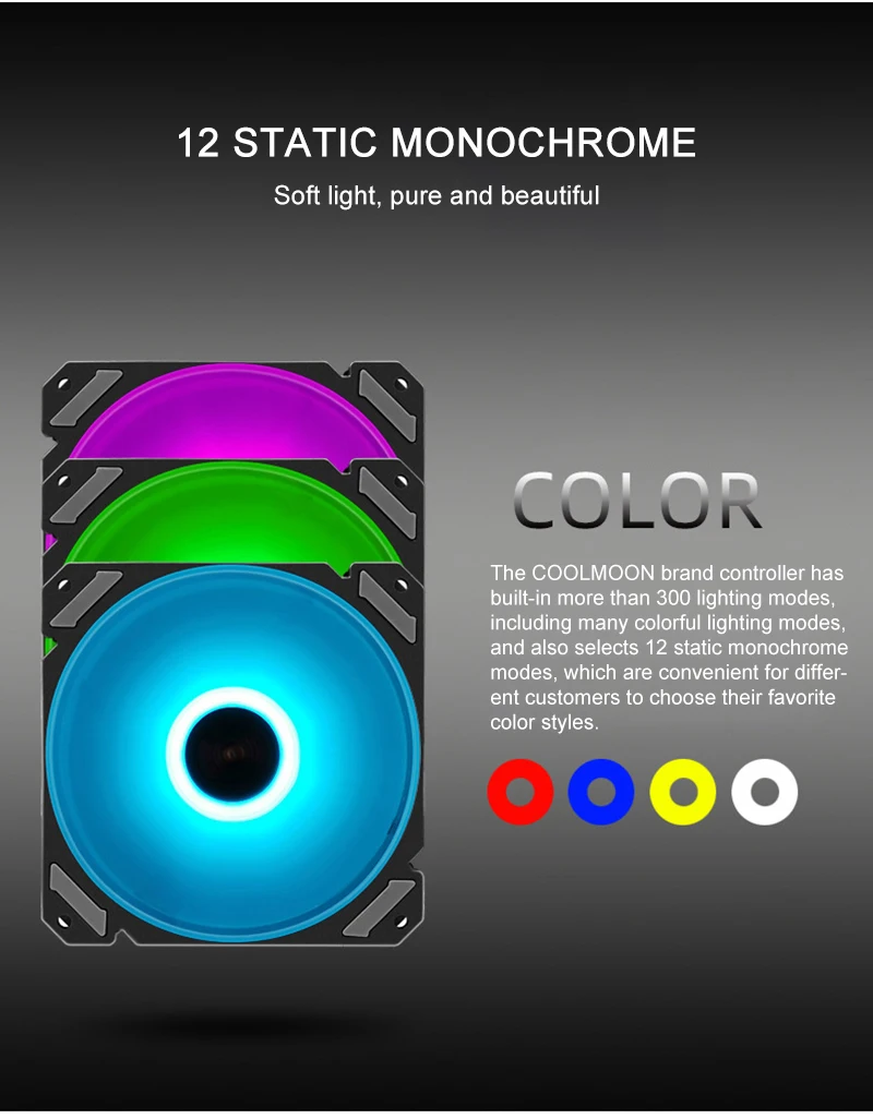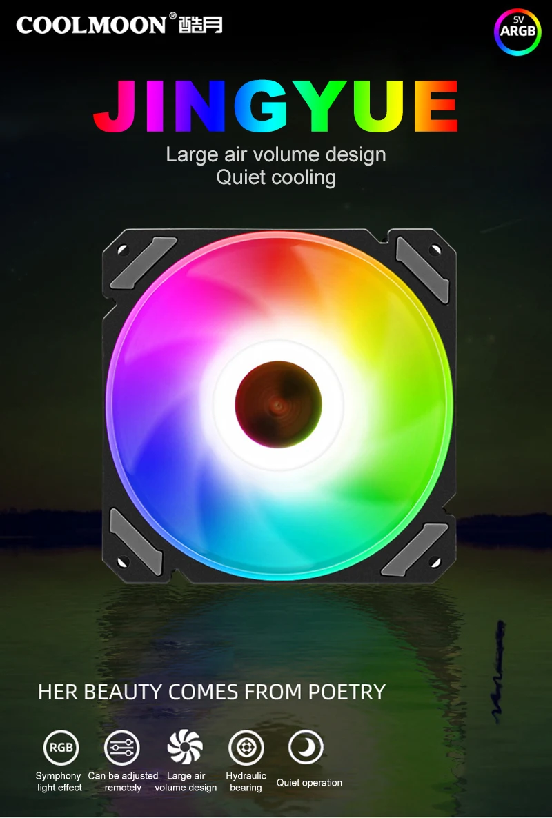 Comprar Coolmoon JINGYUE-ventilador RGB de 12cm, ventilador Interior luminoso, silencioso, para ordenador de escritorio
