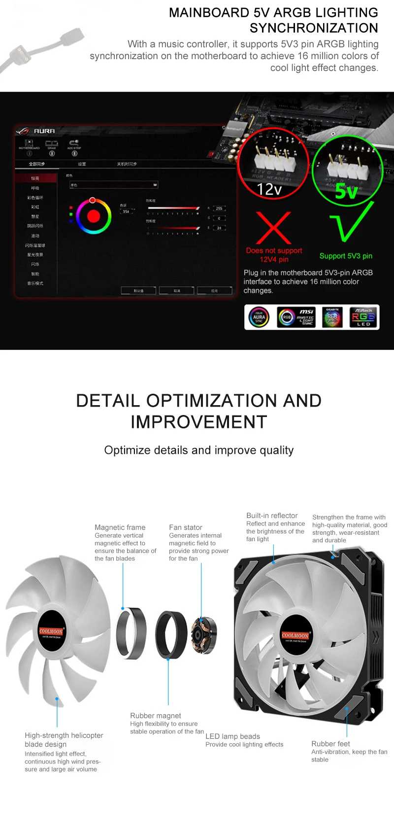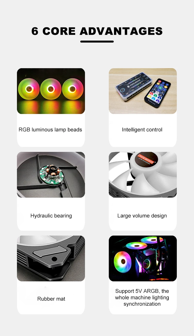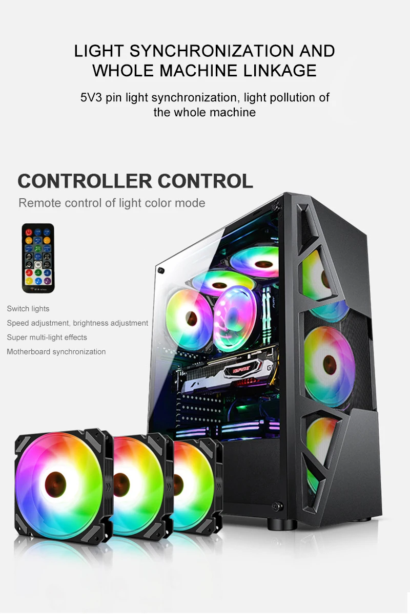 Comprar Coolmoon JINGYUE-ventilador RGB de 12cm, ventilador Interior luminoso, silencioso, para ordenador de escritorio