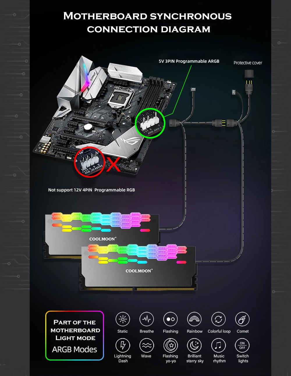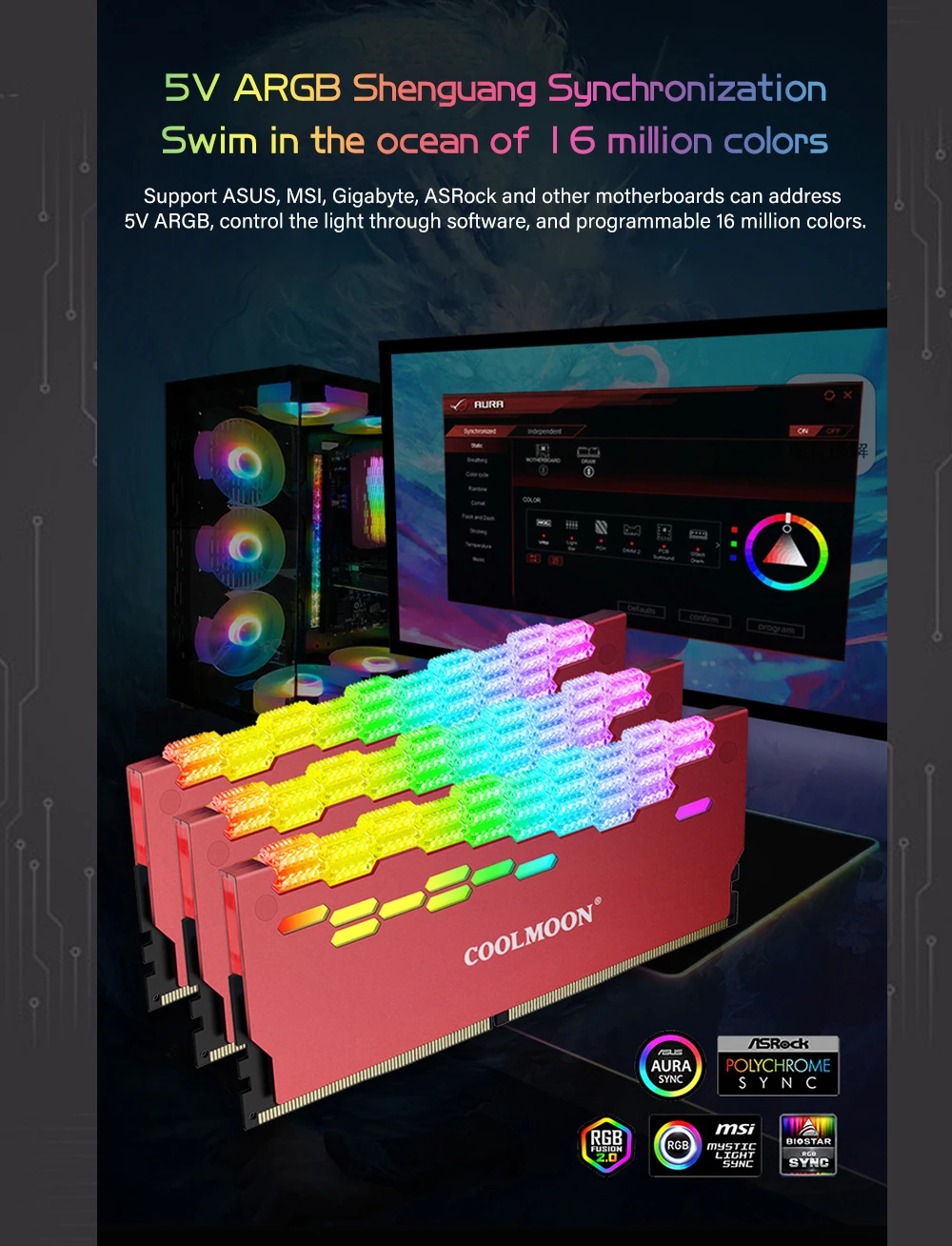 Comprar COOLMOON-memoria RAM para radiador de PC, Accesorios de ordenador de escritorio, RA-2 M/B 5V ARGB