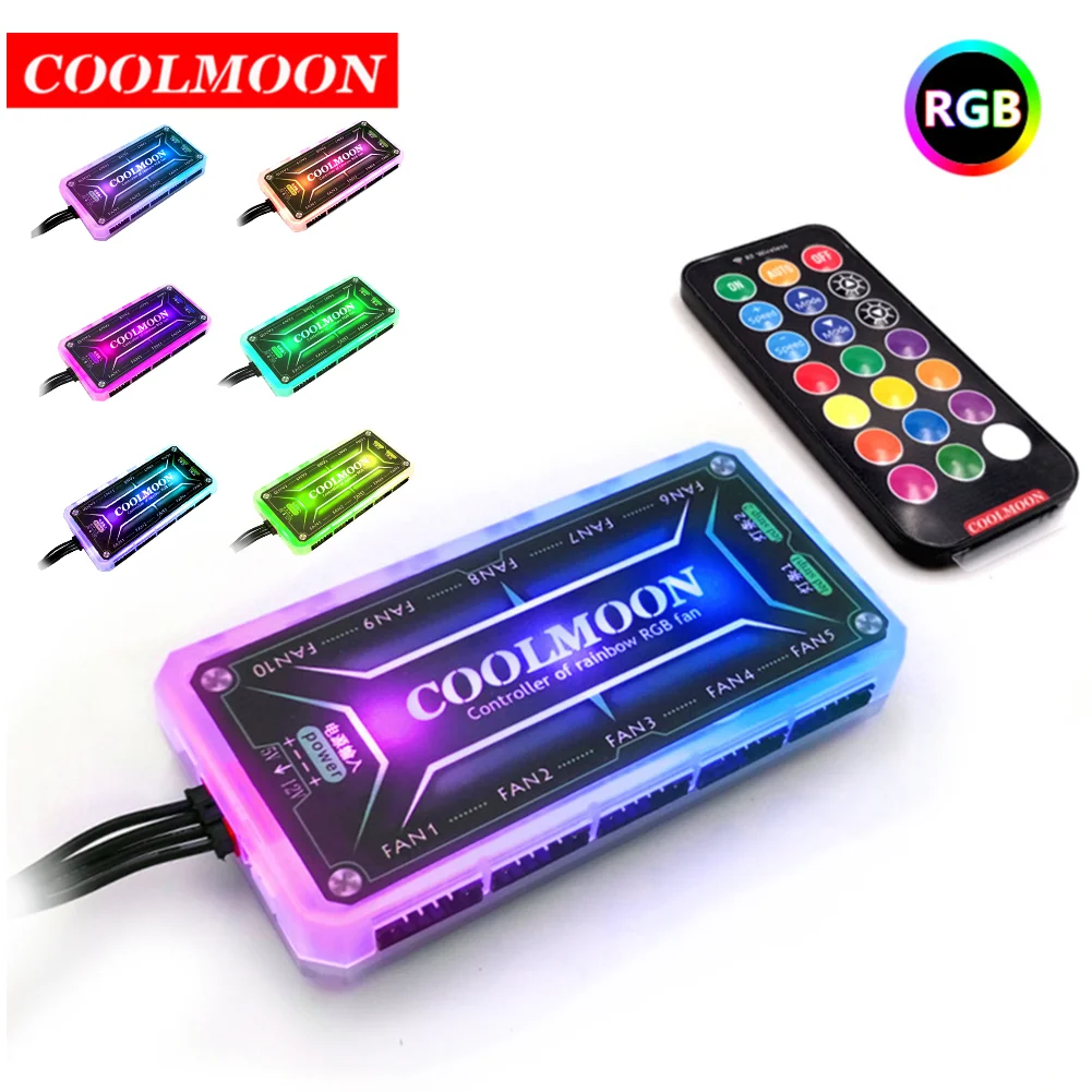 Comprar COOLMOON RGB atenuador remoto de luz DC12V 5A LED controlador inteligente de Color puerto de ventilador de 10x6 pines puerto de barra de luz de 2x4 pines para ventilador RGB
