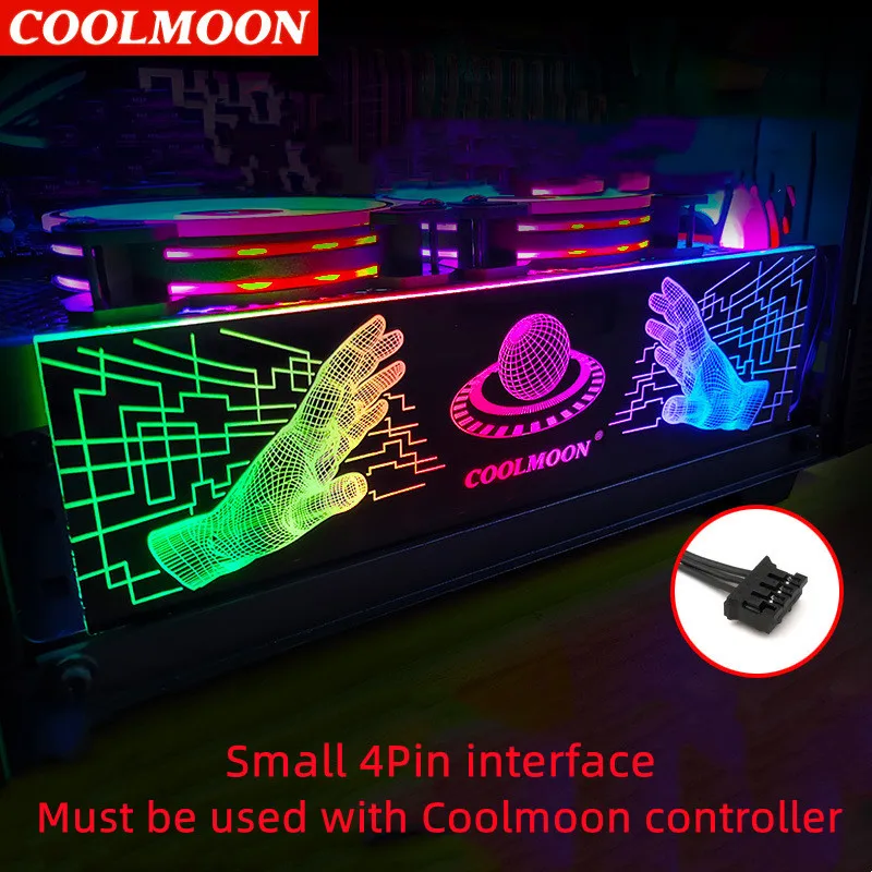 COOLMOON-Marco de soporte de placa de luz RGB, Panel lateral emisor de luz LED para iluminación de PC, chasis de escritorio, placa de soporte de CPU para PC, chasis de escritorio, caja de alimentación, Panel lateral de iluminación pequeño de 4 pines que cambia de Color Característica: Se adapta al 99% de los compartimentos de alimentación del chasis del mercado, ritmo fresco e instalación conveniente. Sistema de control de iluminación genial: la placa de luz tiene una pequeña interfaz de fuente de alimentación de 4 pines, que debe conectarse al puerto de la barra de luz del controlador.