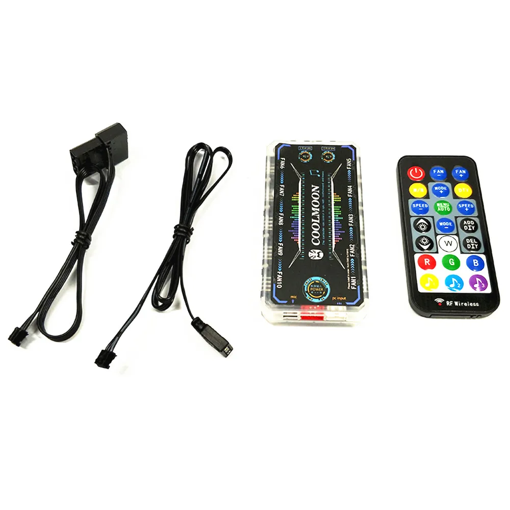 Longitud del cable: la longitud del cable de 5 V3 pines a 6 pines es de aproximadamente 17 cm; La longitud del cable de 5 V3 a 4 pines es de aproximadamente 11 cm.Uso de línea de 5 V de 3 pines a 6 pines: cambie el ventilador de la CPU ARGB de 5 V y 3 pines, el radiador de RAM, la tira de luz y otros equipos a la interfaz de 6 pines del controlador COOLMOON, y el controlador puede controlar las luces de manera uniforme y cambiar los colores sincrónicamente con el ventilador.Uso de línea de 5 V de 3 pines a 4 pines: cambie el ventilador de la CPU ARGB de 5 V y 3 pines, el radiador de RAM, la tira de luz y otros dispositivos a la interfaz de 4 pines del controlador COOLMOON, y el controlador puede controlar las luces de manera uniforme y cambiar los colores sincrónicamente con el ventilador.