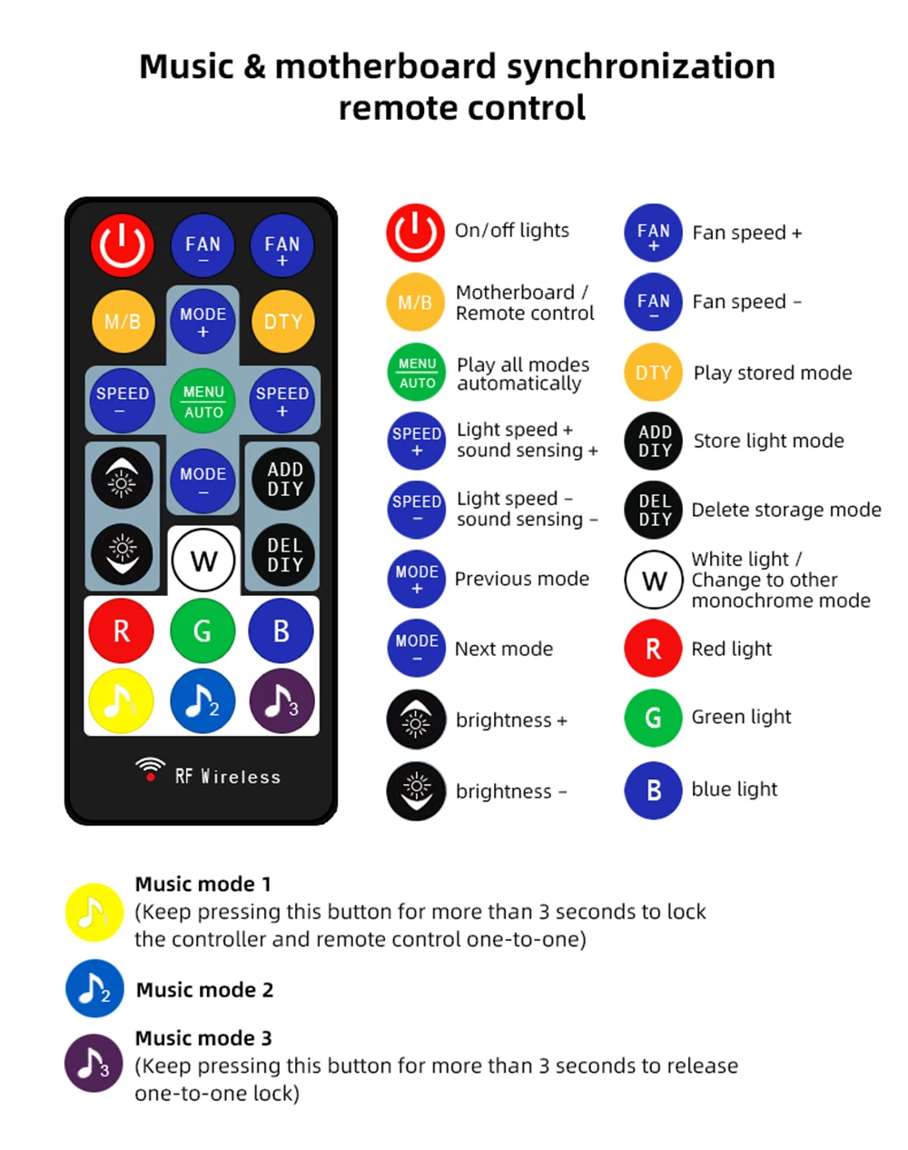 1. Solo aplicable a ventiladores de 6 pines de la marca Coolmoon, tiras de luz de 4 pines, etc. 2. El control remoto no contiene pilas, cómprelas usted mismo. Gracias. 3. El cable de alimentación no debe enchufarse en la posición incorrecta. El cable de alimentación sólo se puede enchufar a la entrada de alimentación marcada en el panel del controlador.