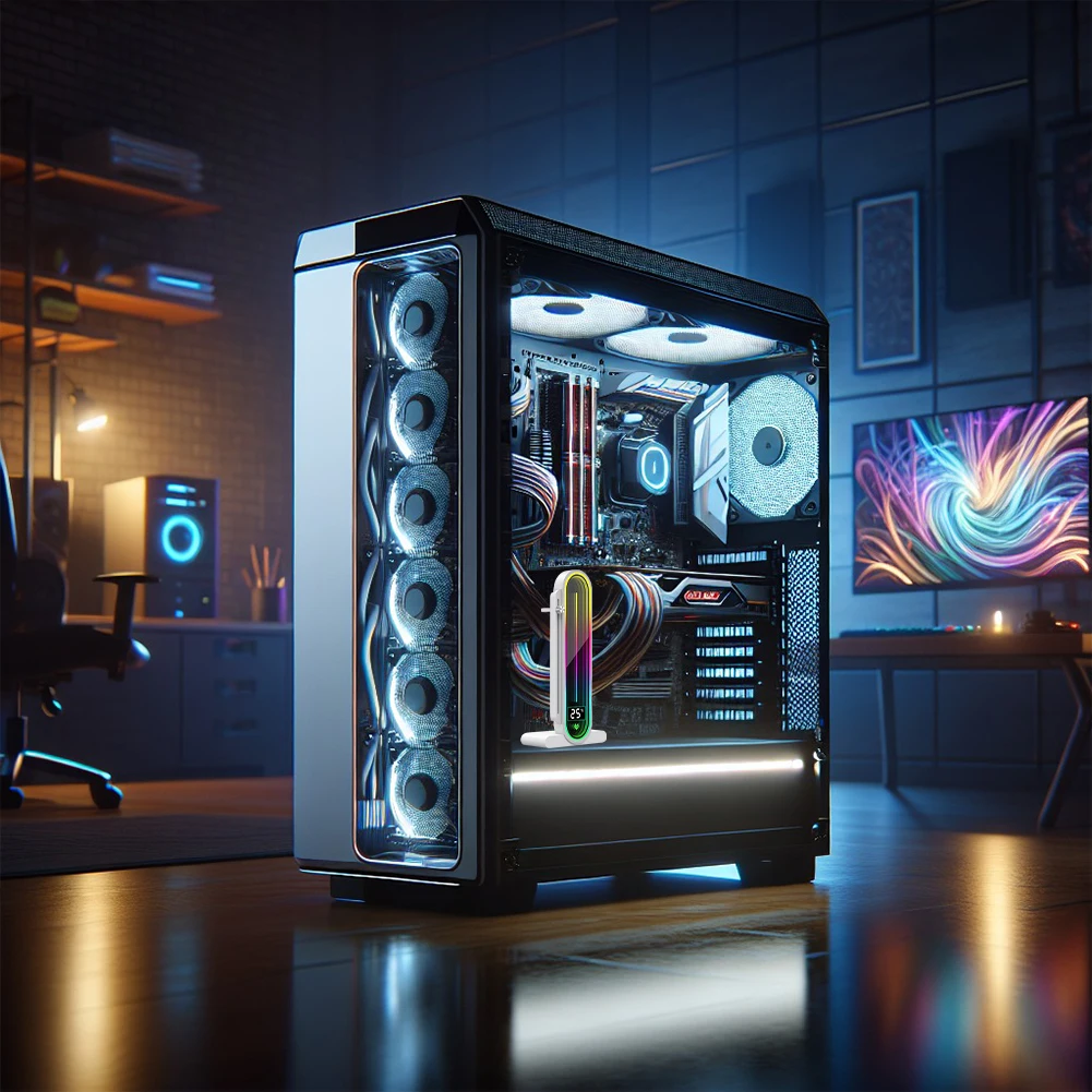 Característica:1.Pantalla de visualización de temperatura:El soporte de la tarjeta gráfica presenta un diseño artístico con una lente de pantalla completa en arco, que admite una visualización de temperatura inteligente LED.La nueva generación de tecnología de detección automática de temperatura muestra la temperatura interna de la carcasa en tiempo real, lo que le permite controlar el estado operativo fácilmente.(Solo la serie G30 Pro admite esta función).