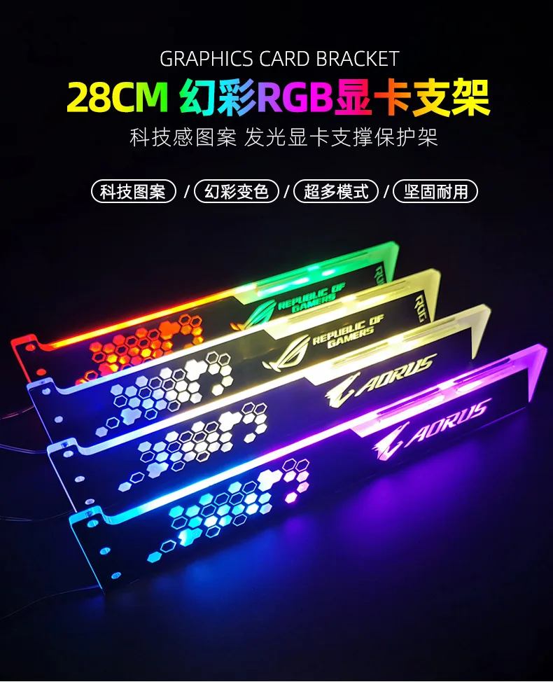 Comprar Coolmoon soporte de tarjeta gráfica de luz LED RGB, 25cm/28cm, 5V, pequeño, 4 pines, GPU, soporte VGA para chasis de computadora, accesorios para PC