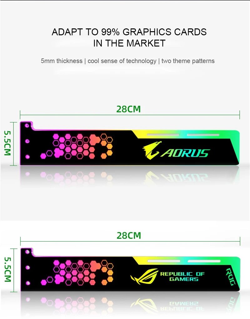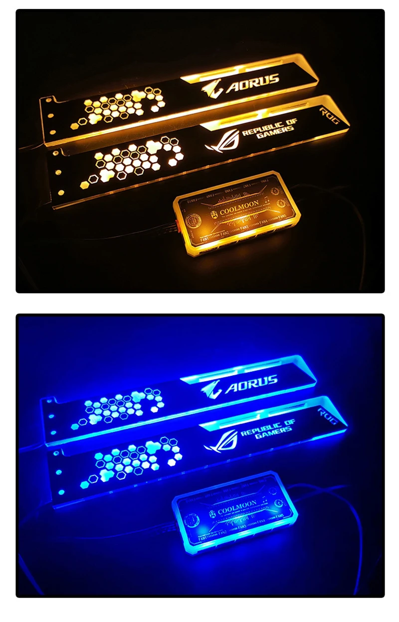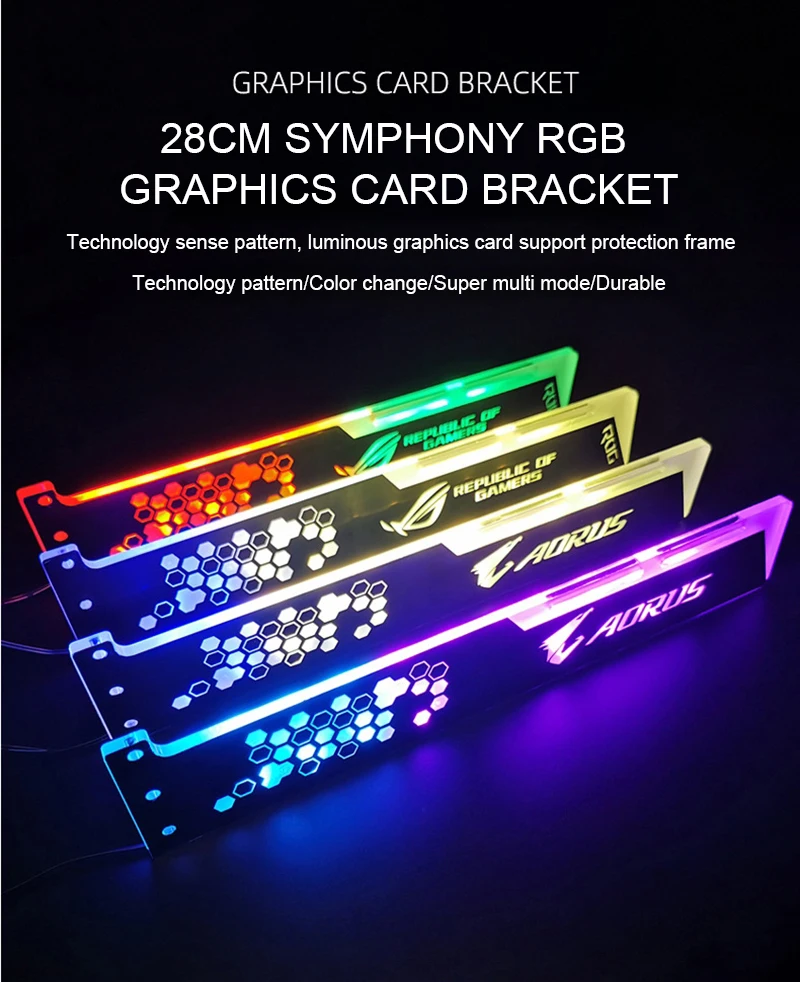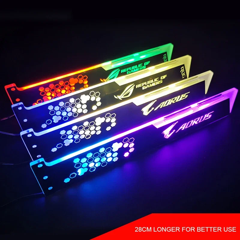 Comprar COOLMOON-Soporte VGA RGB de 28cm, tarjeta de soporte A-RGB horizontal GPU, 5V, 4 pines AURA, enfriador de agua, caja de ordenador, tablero de luz