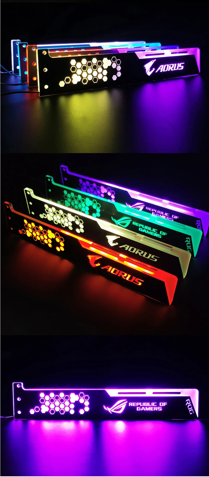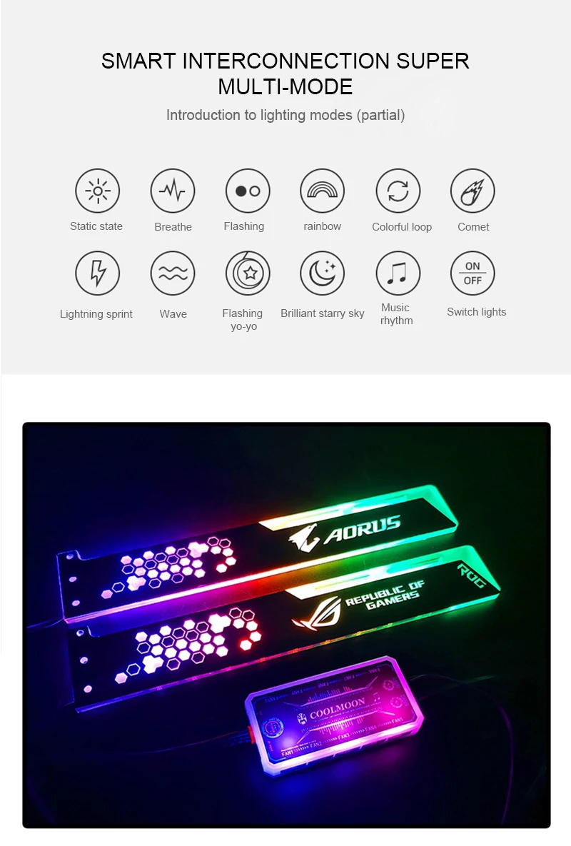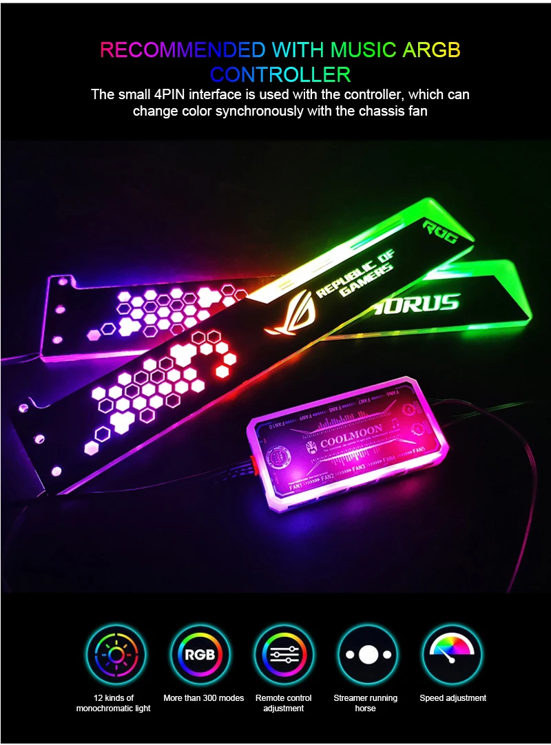Comprar COOLMOON-Soporte VGA RGB de 28cm, tarjeta de soporte A-RGB horizontal GPU, 5V, 4 pines AURA, enfriador de agua, caja de ordenador, tablero de luz