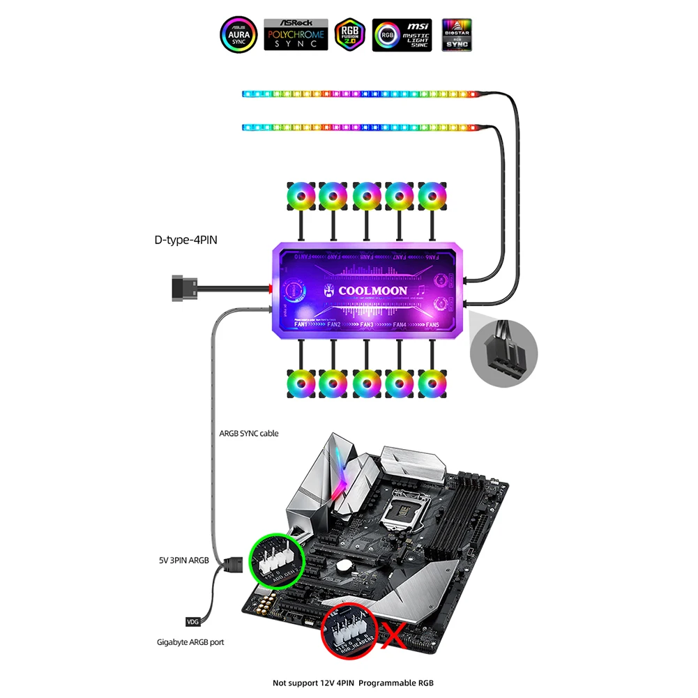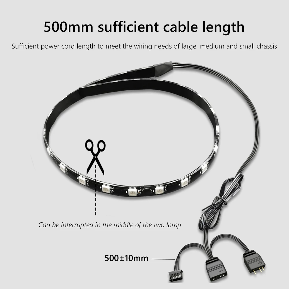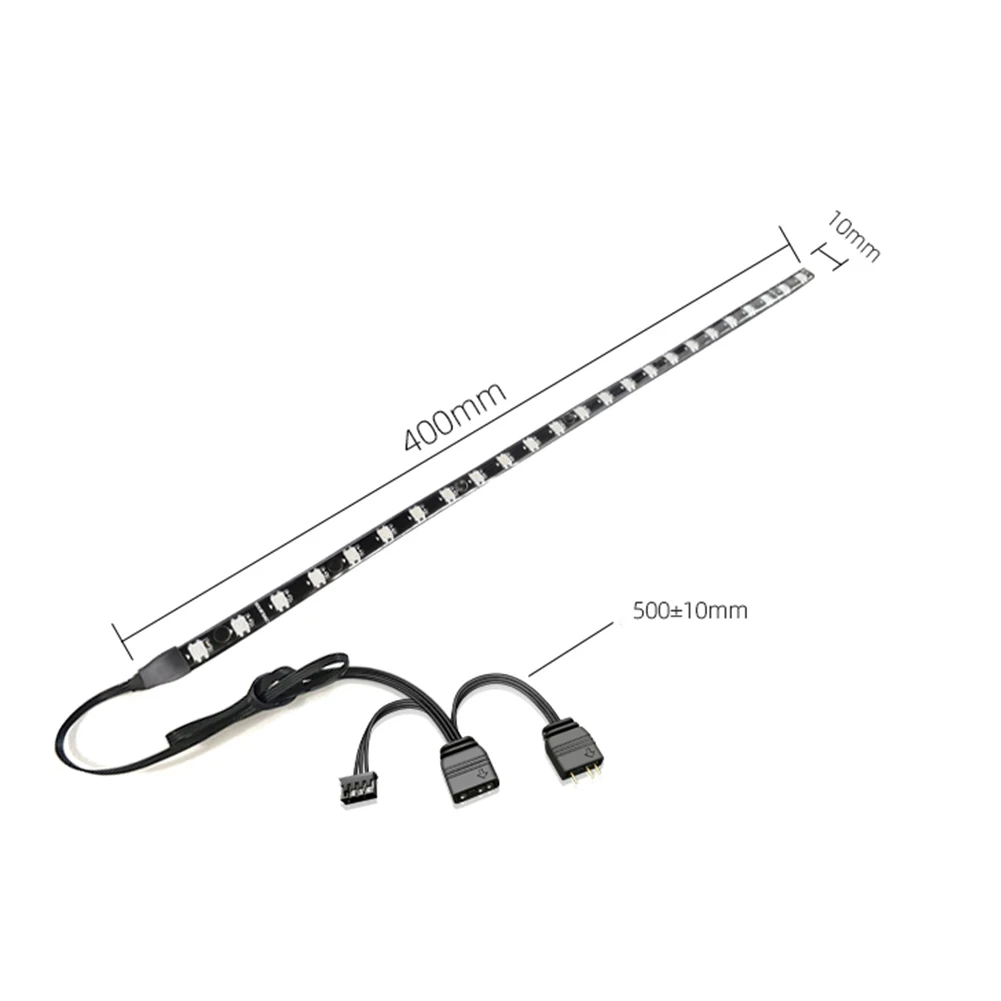 COOLMON CM-LS40 5V ARGBPequeña carcasa de PC de 4 pines, barra de luz LED SATA de 3 pines, tira de lámpara de ordenador de escritorio, placa base de 40cm, accesorio de decoración RGB