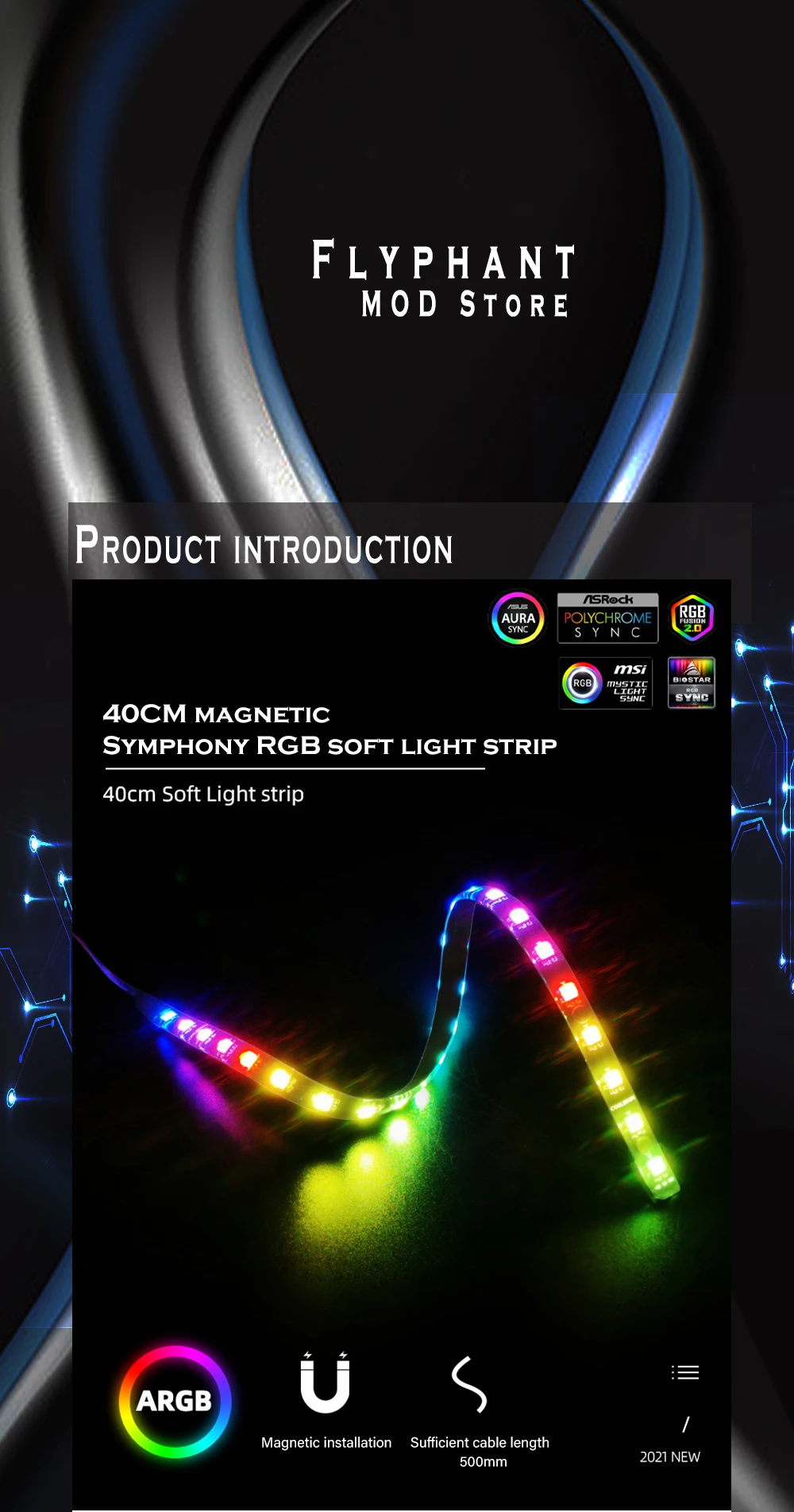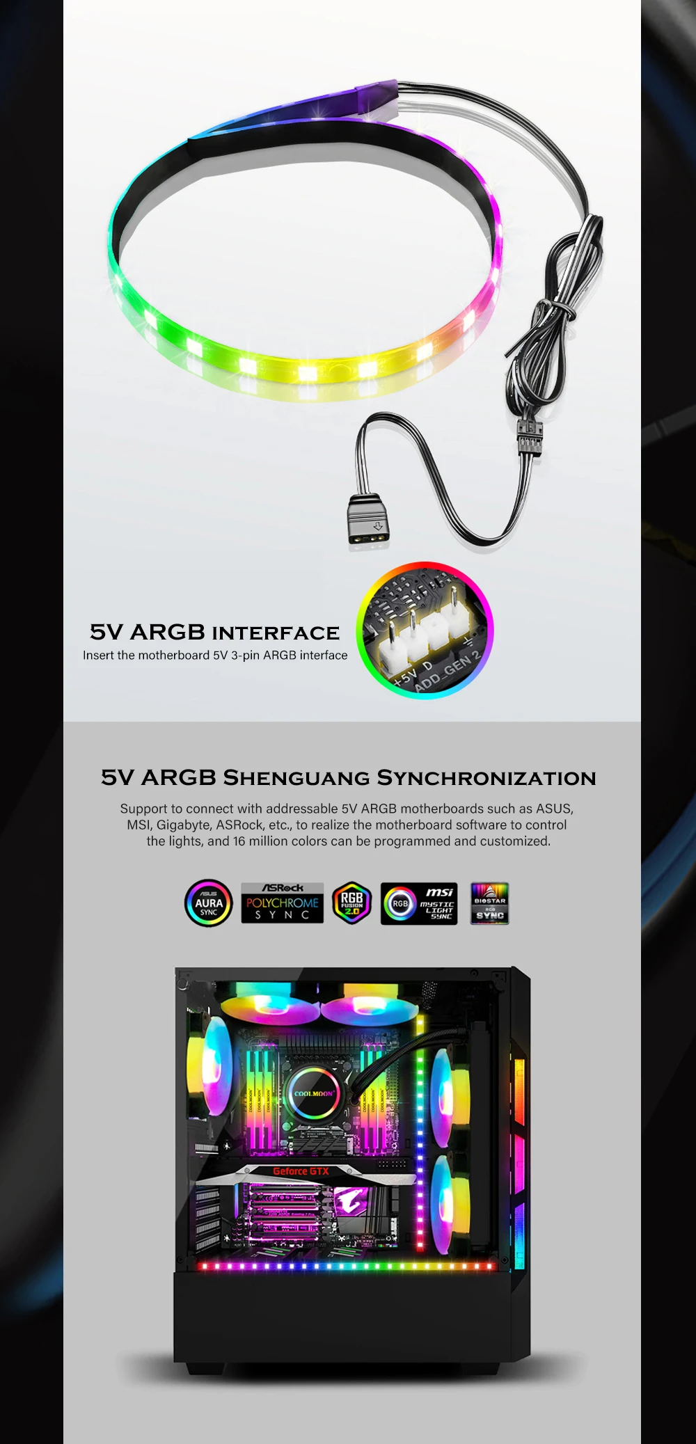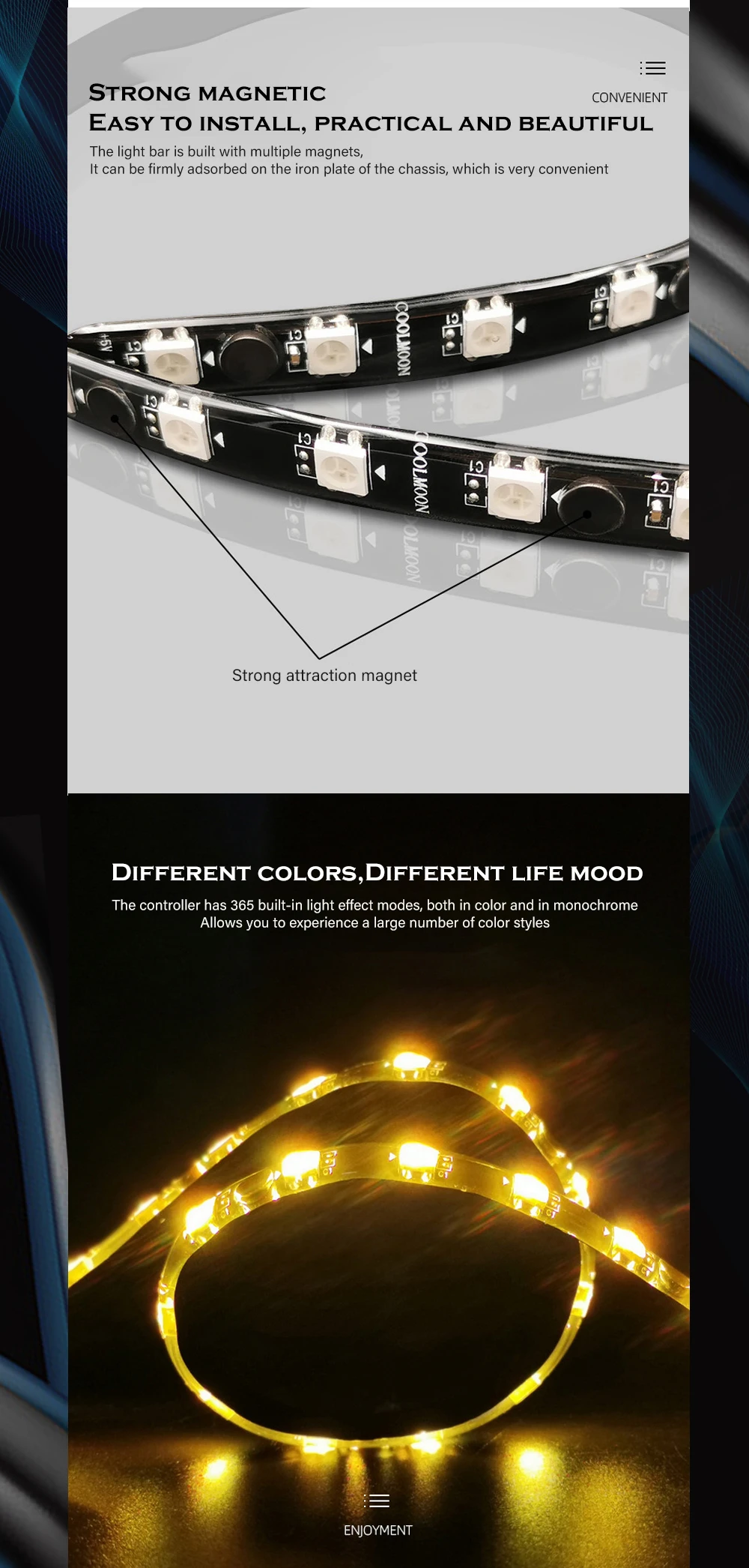 Comprar COOLMOON-tira de luz RGB de succión magnética, cinturón de luz Flexible de 40cm, 5V, ARGB, decoración sincrónica para gabinete de Jugador