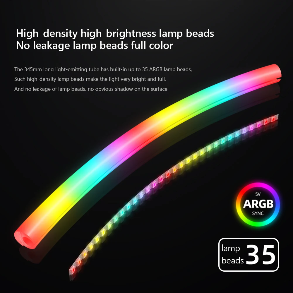 2. Perlas de lámpara de alta densidad y alto brillo:El tubo emisor de luz de 345mm de largo tiene integradas hasta 35 cuentas de lámpara ARGB de piezas. Tales cuentas de lámpara de alta densidad hacen que la luz sea muy brillante y completa, sin fugas de cuentas de lámpara y sin sombras evidentes en la superficie.