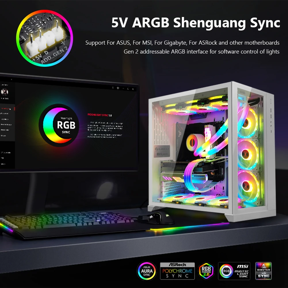 4. 5V ARGB Aura Sync:16,8 millones de colores programables, compatible con la interfaz ARGB direccionable de segunda generación de ASUS / MSI / Gigabyte / ASRock y otras placas base, y controla la iluminación a través del software.