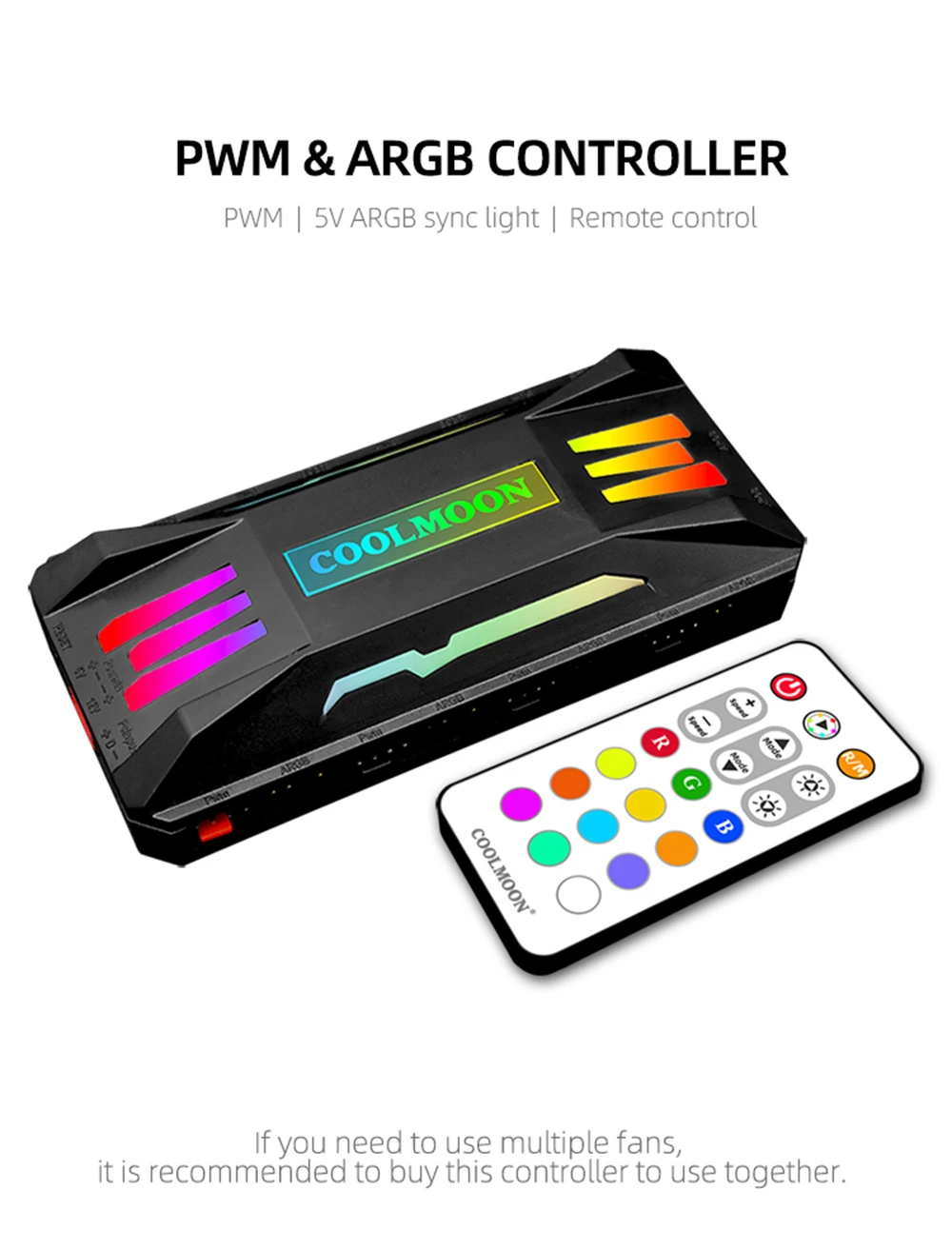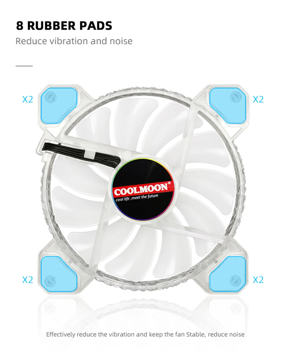 Coolmoon-ventilador ARGB de 12CM, Control PWM, 5V ARGB, chasis de 3 pines, disipador de calor, ventilador silencioso, AURA SYNC, 4 pines para carcasa de PC, enfriador de agua, radiador de CPU