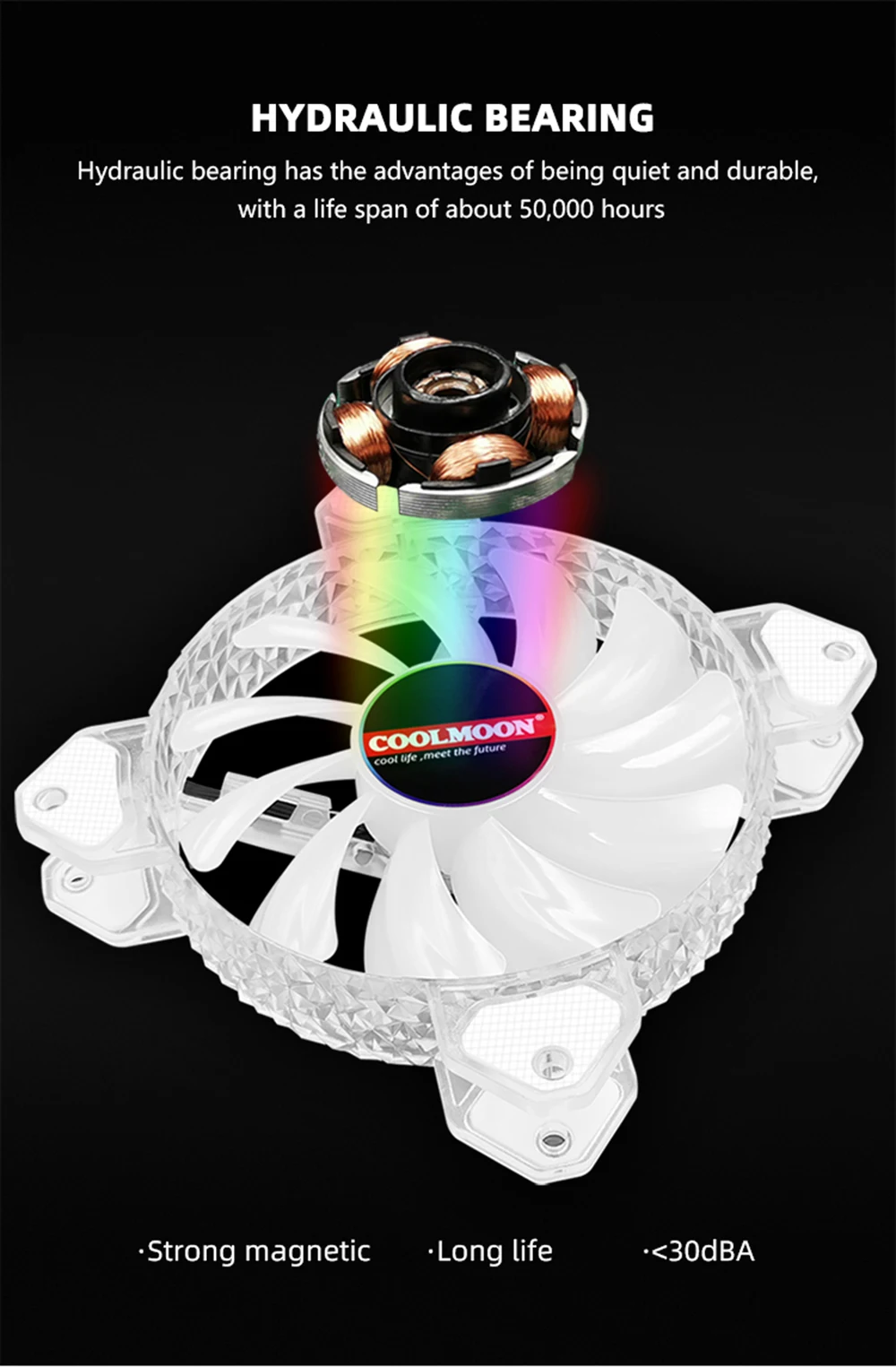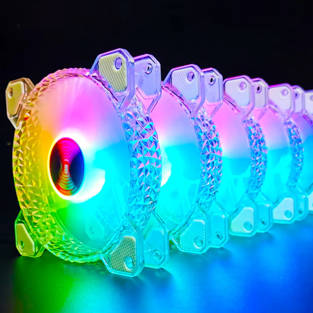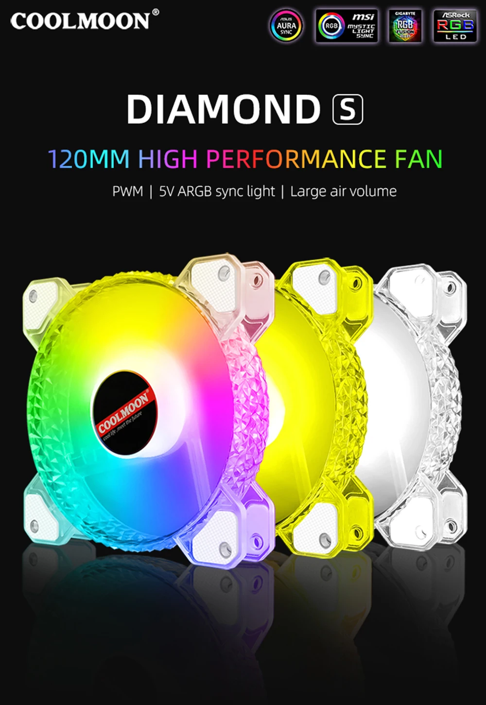Coolmoon 12CM diamante ARGB ventilador control PWM 5V ARGB 3Pin chasis disipador de calor ventilador silencioso AURA SYNC 4Pin para carcasa de PC enfriador de agua CPU radiador