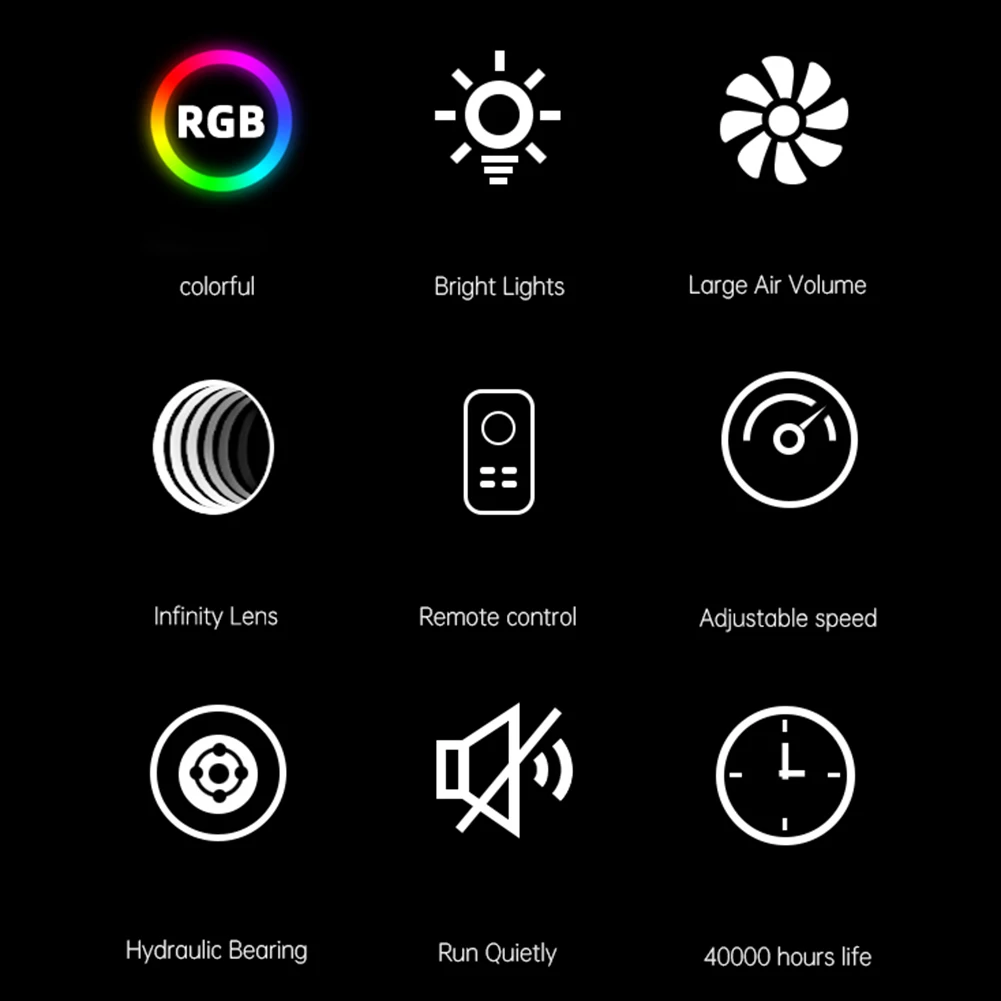 3. Diseño de lente infinito, iluminación de gota de lluvia:El ventilador YT1 cuenta con lentes de alta definición de múltiples lados que crean un efecto de bucle infinito, que se asemeja a una puerta de entrada a una dimensión misteriosa. El diseño lateral se asemeja a las gotas de lluvia, ofreciendo un aspecto elegante, moderno y fresco, perfecto para añadir un toque de tecnología y evitar la contaminación lumínica.