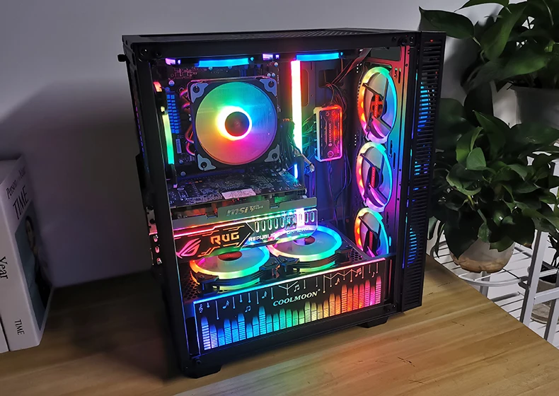 Coolmoon Case Fan PC Cooling RGB Fan con IR Remote Quiet Computer Case CPU Cooler y Radiador Componentes de la computadora Ventilador de 120mm
