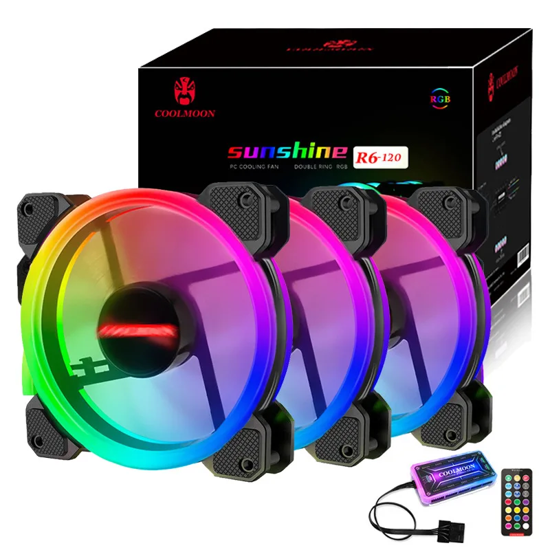 Coolmoon Case Fan PC Cooling RGB Fan con IR Remote Quiet Computer Case CPU Cooler y Radiador Componentes de la computadora Ventilador de 120mm