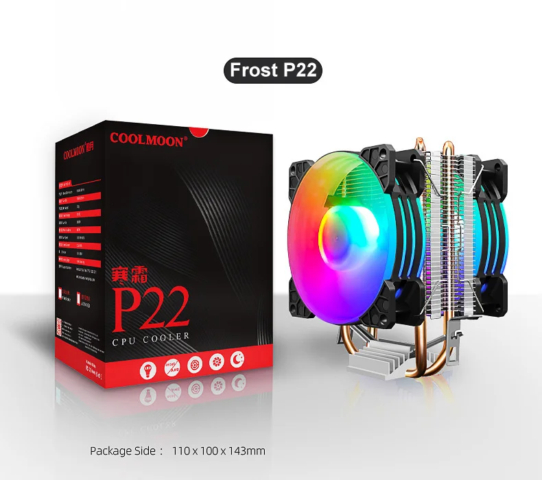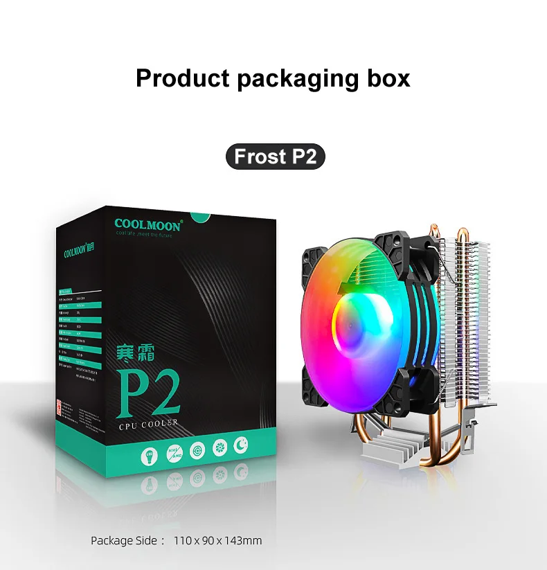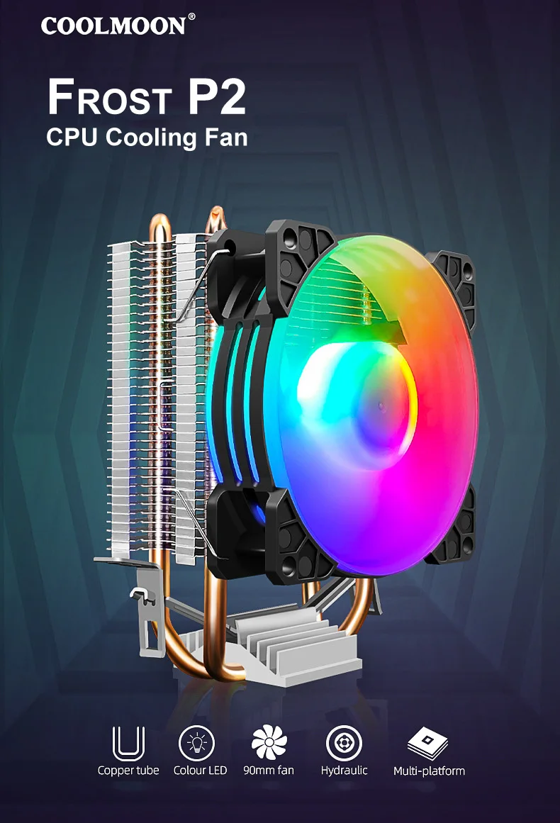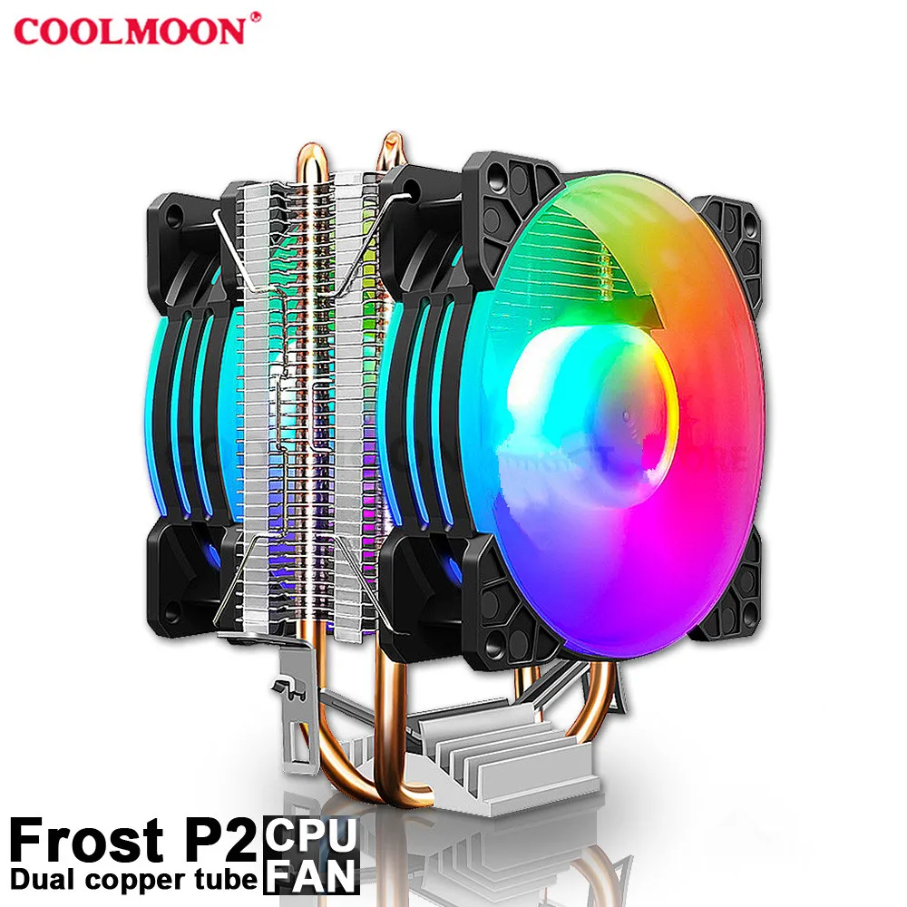 COOLMOON CPU Ventilador Radiador Doble Tubo de Cobre 9cm Vertical Mute AMD115X Computadora de Escritorio Tubo de Calor Refrigeración CPU Ventilador Frost P2 P22Parámetro del productoTamaño del producto: 95x65X130mm (ventilador único)