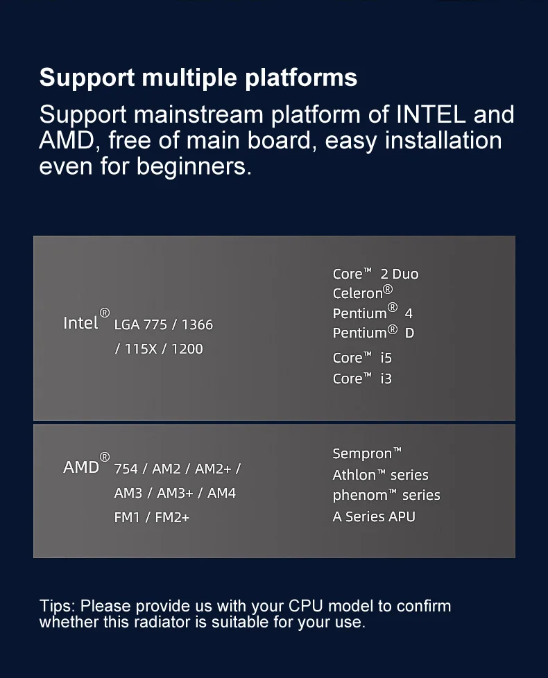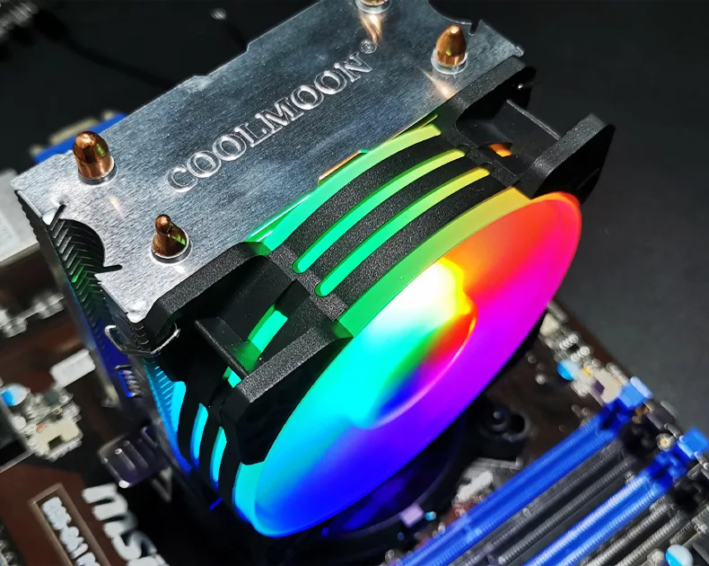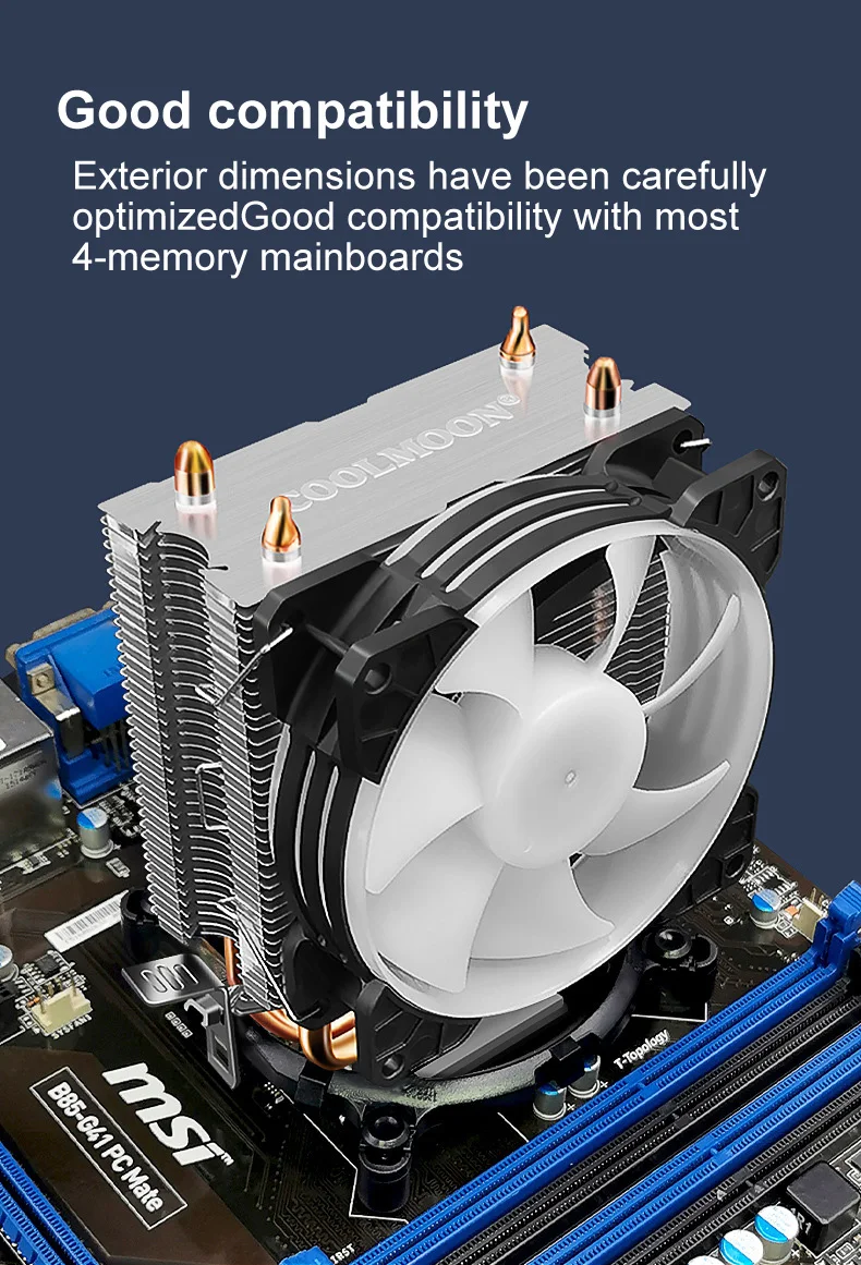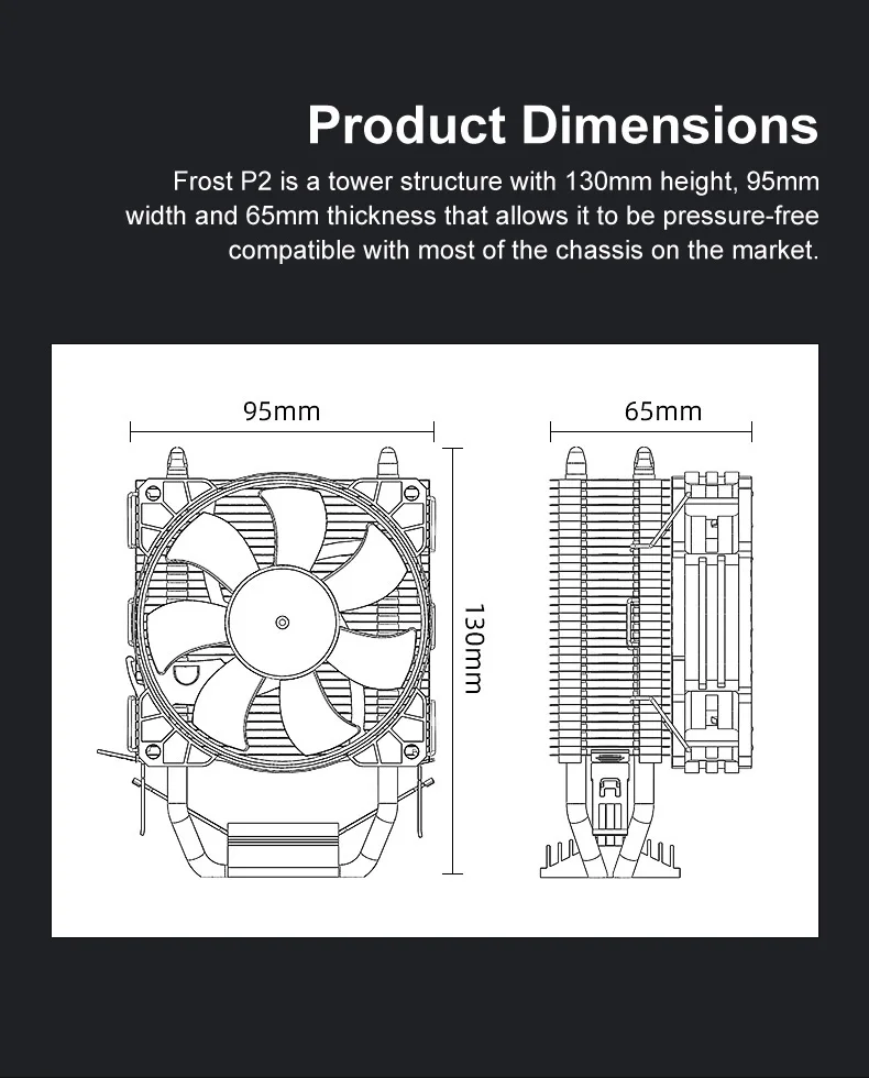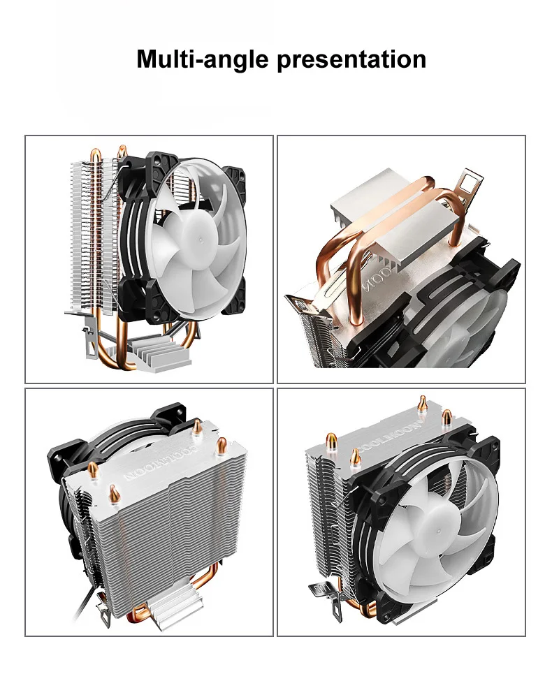 COOLMOON CPU Ventilador Radiador Doble Tubo de Cobre 9cm Vertical Mute AMD115X Computadora de Escritorio Tubo de Calor Refrigeración CPU Ventilador Frost P2 P22Parámetro del productoTamaño del producto: 95x65X130mm (ventilador único)