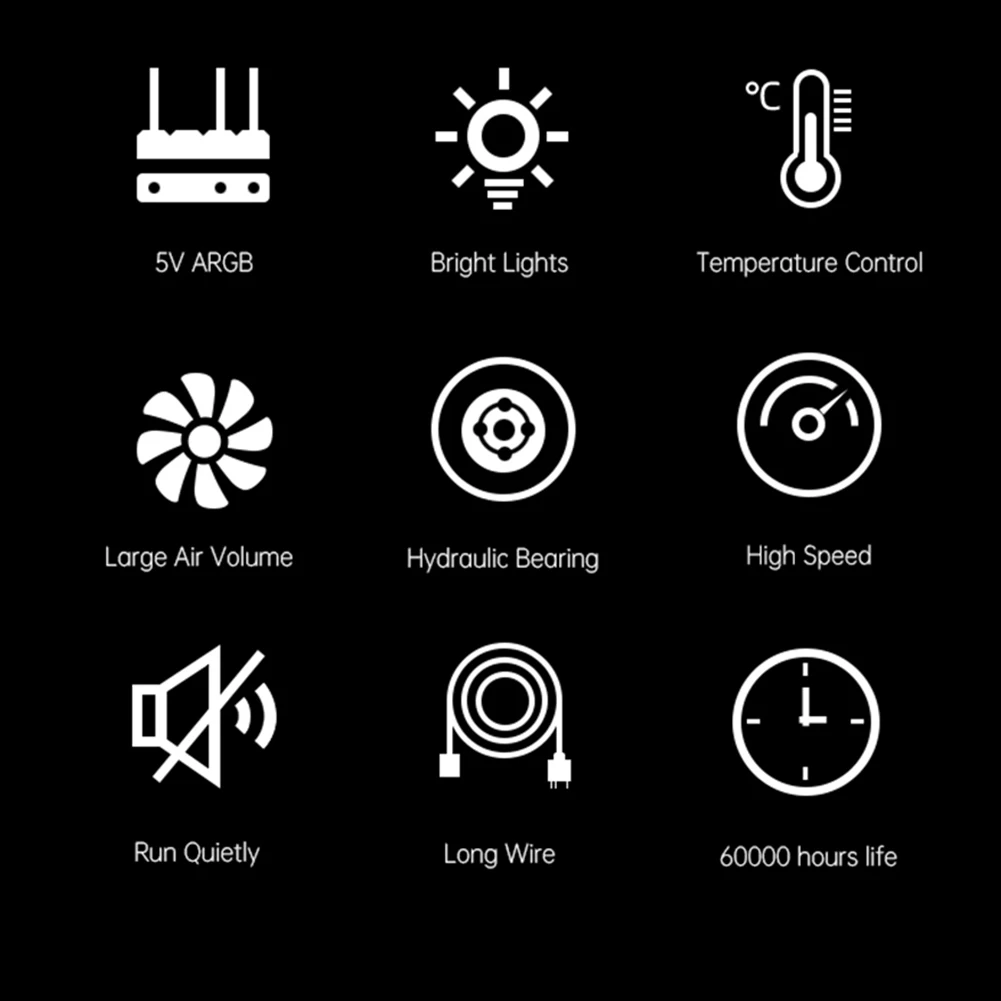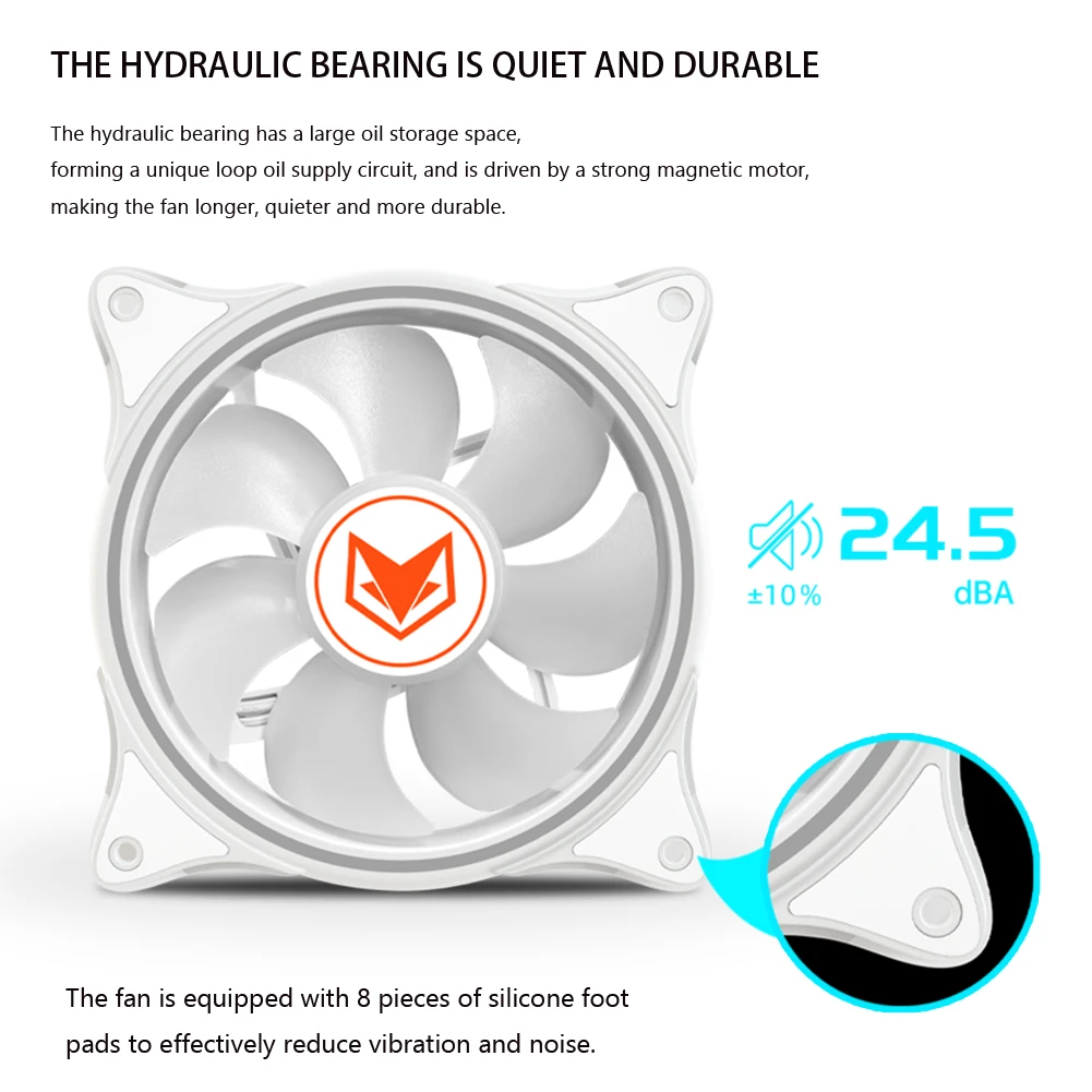 Ventilador de caja COOLMOON de 120mm, 5V, 3 pines, ARGB, ventiladores de chasis de caja, 12V, 4 pines, PWM, ventiladores de chasis de ordenador, rodamiento hidráulico, 24 accesorios LED Característica: 1. Interior y exterior luminoso, color verdadero ARGB:Se utilizan 24 unidades de cuentas de lámpara ARGB de larga duración, que admiten una pantalla a todo color de 16,8 millones de colores, con colores hermosos, suaves y completos sin fugas de cuentas de lámpara. 2. Presurización del turboventilador y fuerza de viento fuerte:El ventilador conecta e integra hábilmente el anillo reflectante con siete aspas del ventilador, y las aspas del ventilador y el anillo reflectante giran juntos para reunir eficazmente el viento en un haz de viento fuerte y recto. Con un largo alcance y una fuerte fuerza del viento, el ventilador puede generar una fuerte presión de viento y un gran volumen de aire, lo cual es adecuado para el radiador de La CPU, el escape refrigerado por agua, y posición del ventilador de 12cm del chasis del ordenador. 3. 5V ARGB, Aura Sync:Admite la conexión de interfaces ARGB direccionables de 5V para ASUS / MSI / Gigabyte / ASRock y otras placas base para lograr el control de la iluminación por software, y se pueden definir 16,8 millones de colores mediante programación. Admite control de temperatura inteligente PWM de la placa base, ajusta automáticamente la velocidad del ventilador de acuerdo con la temperatura de la CPU, ahorra energía y reduce el ruido, y le brinda un disfrute silencioso. 4. El rodamiento hidráulico es silencioso y duradero:El rodamiento hidráulico tiene un gran espacio de almacenamiento de aceite, formando un circuito de suministro de aceite de bucle único, y es accionado por un fuerte motor magnético, lo que hace que el ventilador sea más largo, silencioso y duradero. El ventilador está equipado con 8 almohadillas de silicona para reducir eficazmente la vibración y el ruido. 5. Nota:Si la placa base admite una interfaz ARGB de 5V y 3 pines, se puede conectar directamente a la placa base sin nuestro controlador; si no es compatible, no se puede usar el ventilador separado, Y debe combinarse con el controlador de esta marca. Especificación: Tamaño del ventilador: 120mm/4,72 pulgadas Origen: China continental Cantidad de cuchillas: 7 Certificación: CE Líneas: 2 líneas Paquete: Sí Se utiliza para: funda Número de modelo: ventilador de refrigeración con carcasa de PC Marca: COOLMOON AsiaFox Modelo: NEON Color: negro, blanco (opcional) Tipo: rodamiento hidráulico Velocidad de rotación: 800-1800 ± 10% RPM Volumen de aire: 79CFM Ruido: 10-25dBA Corriente: ventilador 0.35A; cuenta de lámpara 0.25A Voltaje nominal: ventilador DC 12V + cuenta de lámpara DC 5V Potencia nominal: 4,5 W Vida útil prevista: 60000H Características: diseño silencioso, ultra silencioso y antideslizante, compatible con el control inteligente de la temperatura Longitud de la línea de interfaz: 4PIN: 450 ± 10mm/17.723 ± 0.39in, PIN: 550 ± 10mm/21,65 ± 0.39in Peso: 0,16 kg Tamaño: 120x120x25mm/4,72x4,72X0, 98in Nota: ![]() ![]() ![]() ![]() ![]() ![]() ![]() ![]() ![]() ![]() ![]() ![]() ![]() ![]() ![]() ![]() ![]() ![]() ![]() ![]() ![]() ![]() ![]() ![]() ![]() ![]() ![]() ![]() ![]() ![]() ![]() ![]() ![]() ![]() ![]() ![]() ![]() ![]()