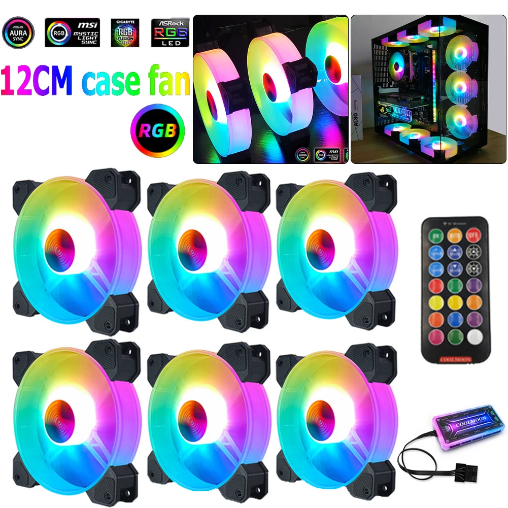 Comprar COOLMOON-ventilador de refrigeración para chasis de ordenador, Enfriador de 120mm, RGB, 12V, 6 pines, radiador silencioso para PC