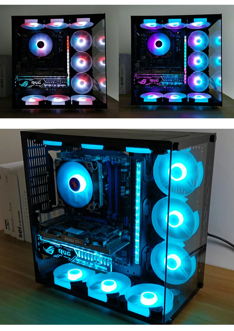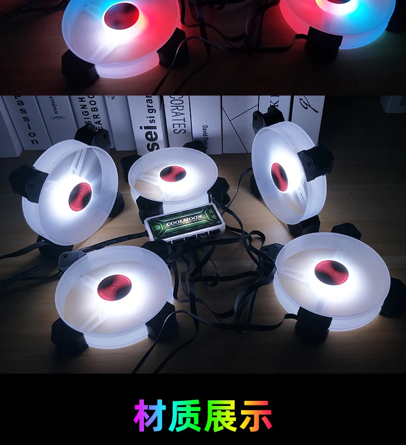 Coolmoon Chasis de computadora Ventilador de PC Ajuste RGB Ventilador de refrigeración 120mm Control silencioso Enfriador de computadora Refrigeración Ventiladores de caja RGB