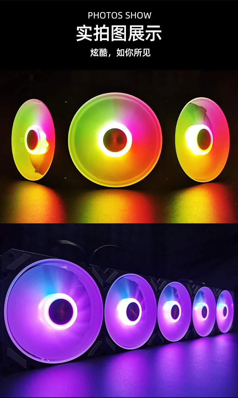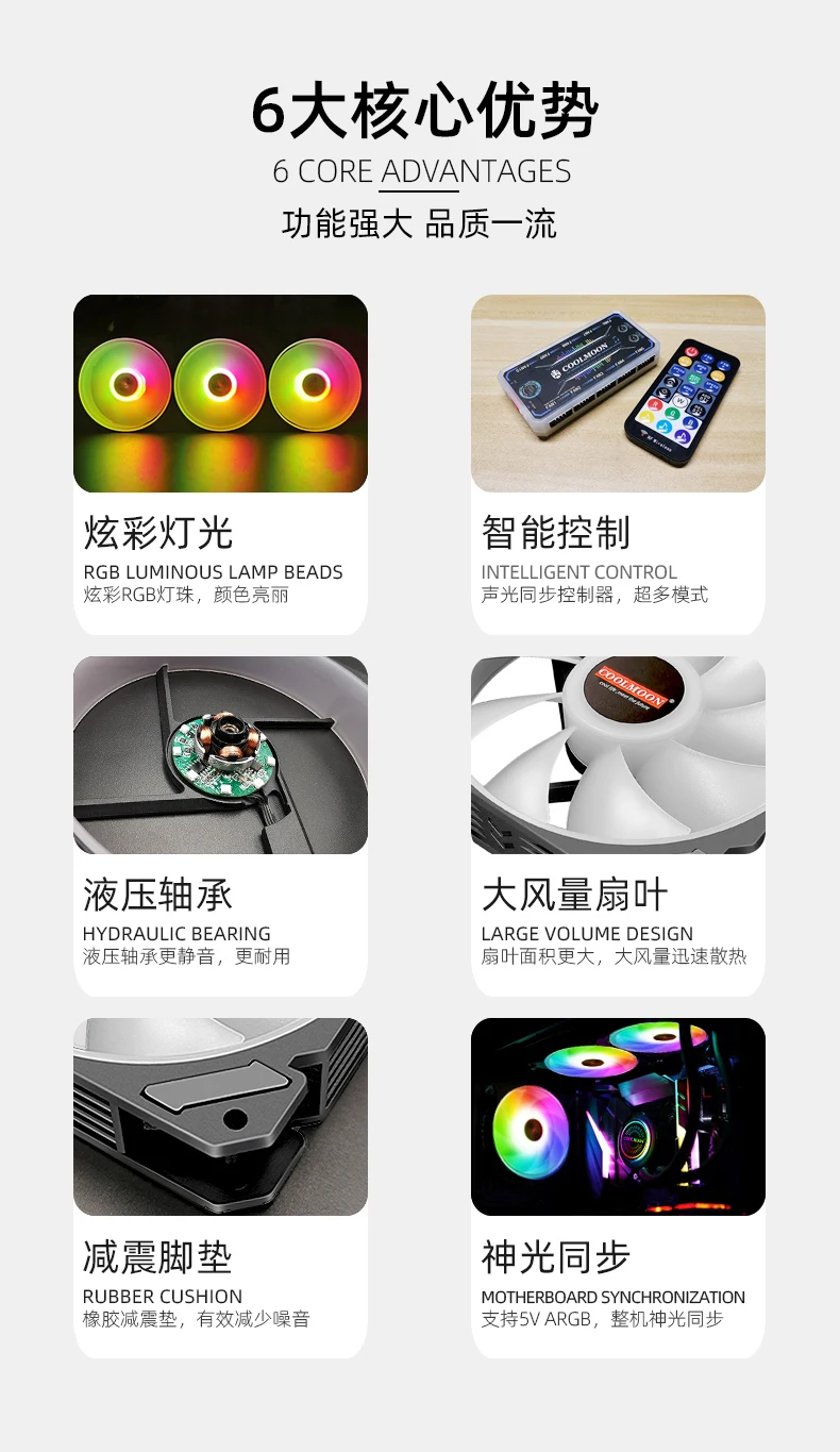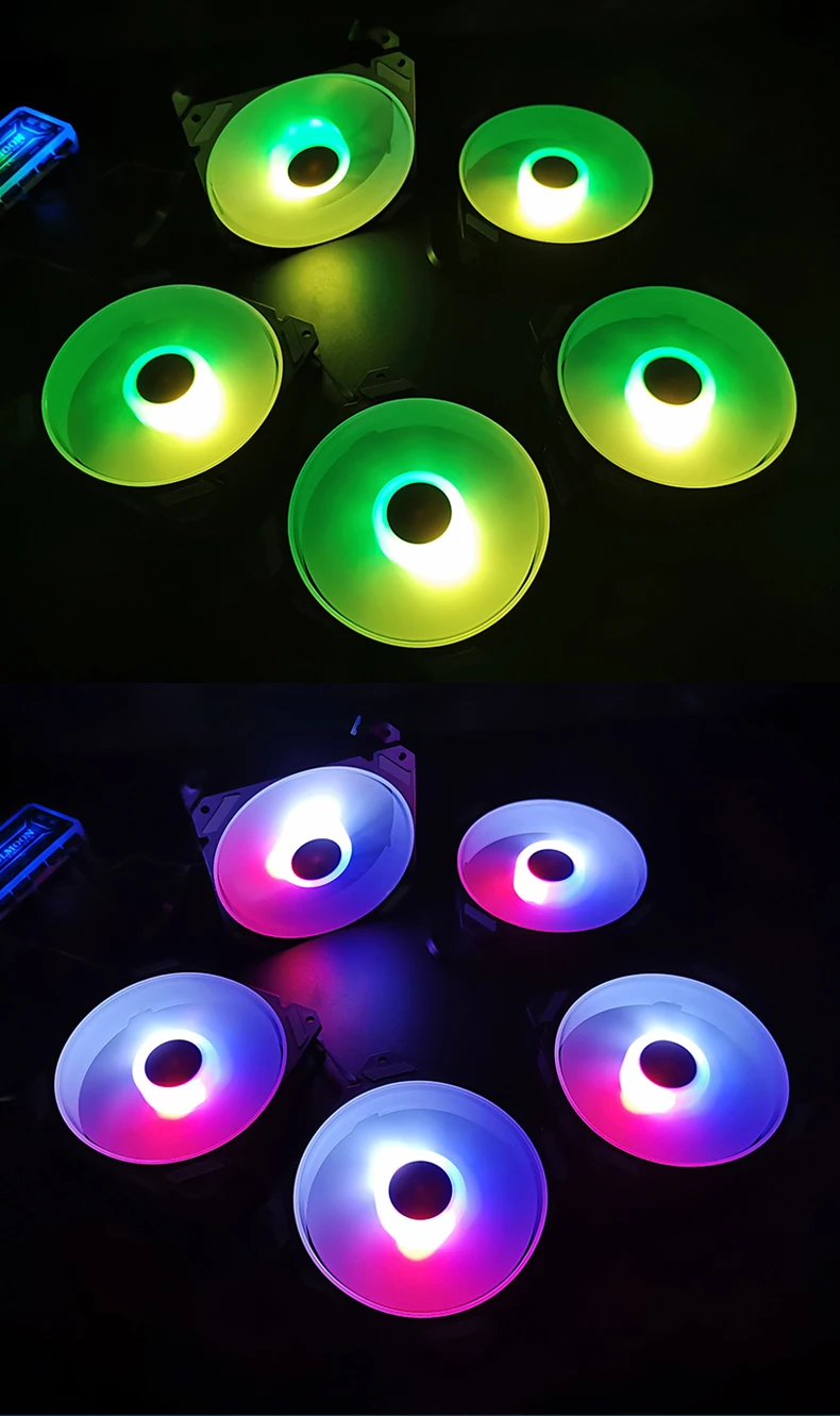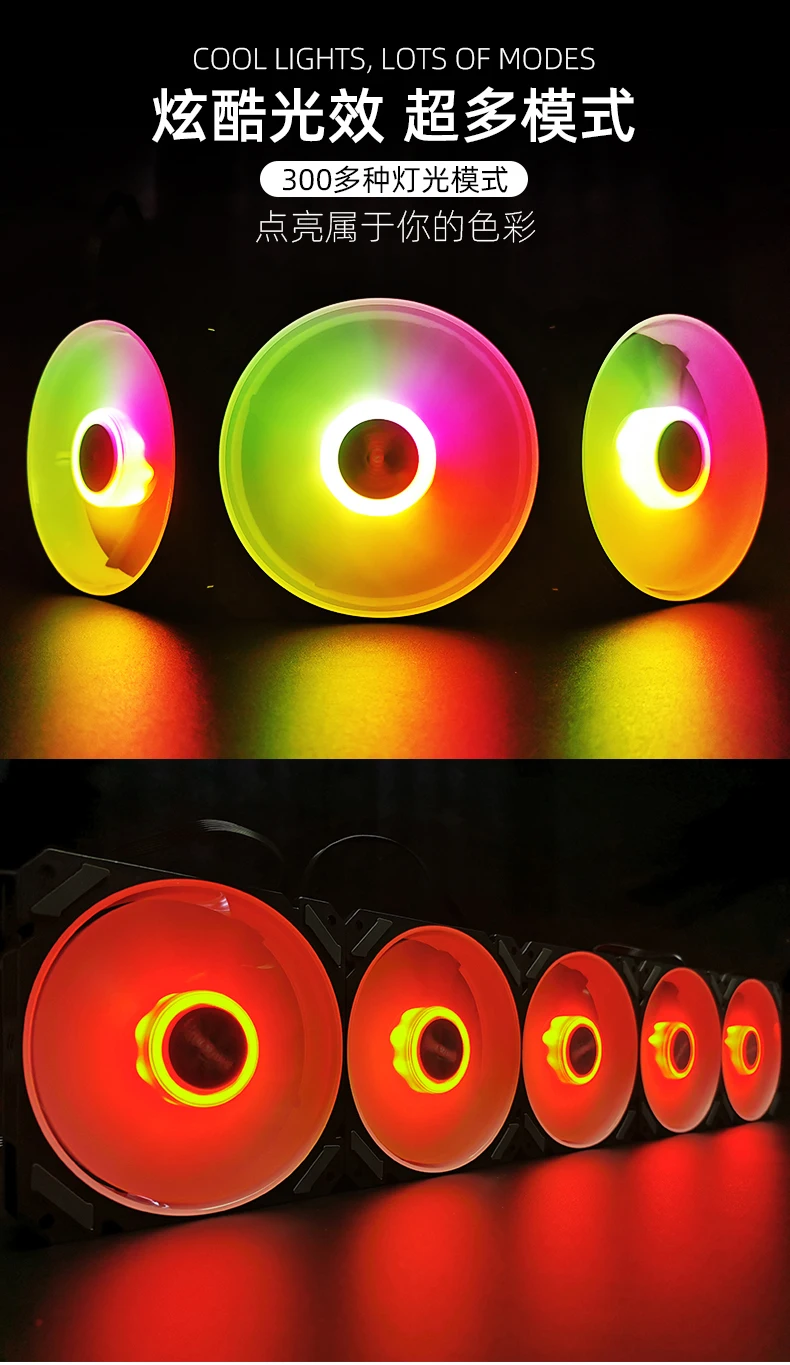 Comprar Coolmoon-Ventilador RGB con carcasa de ordenador, Enfriador de radiador con lámpara colorida de 6 pines, 120mm, silencioso, para chasis de PC