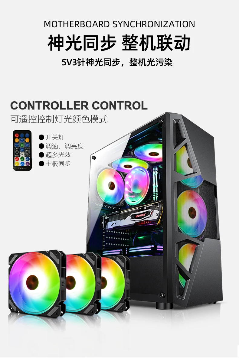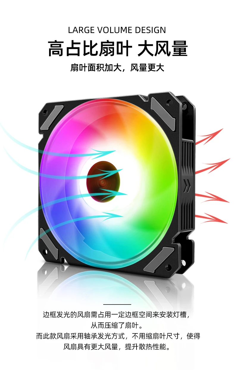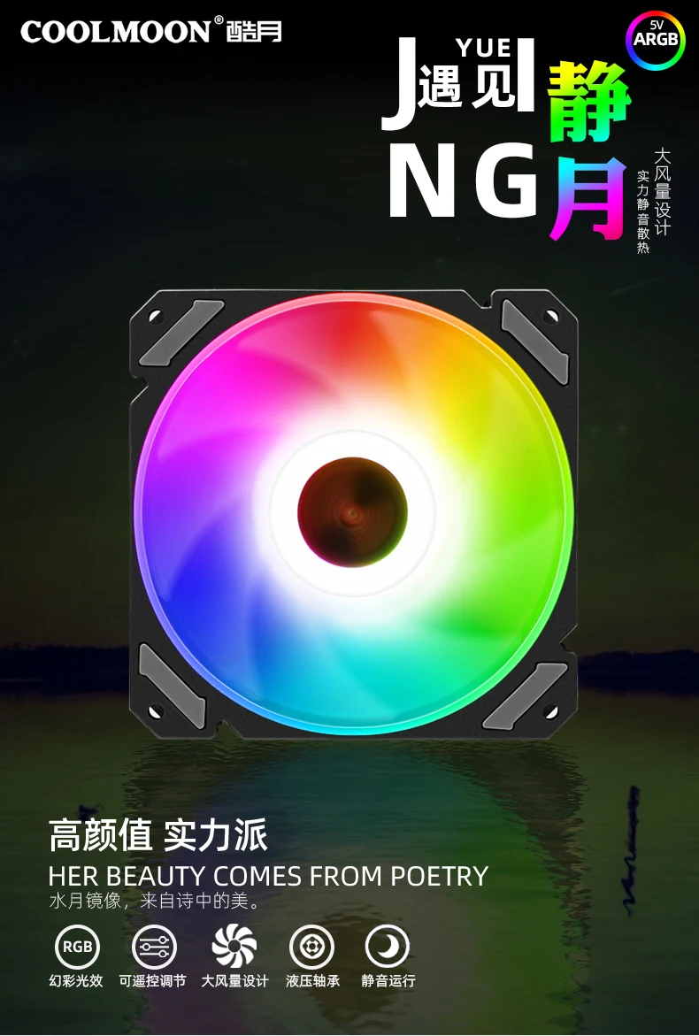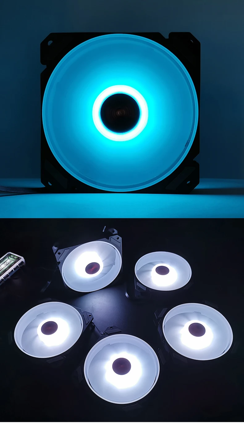 Comprar Coolmoon-Ventilador RGB con carcasa de ordenador, Enfriador de radiador con lámpara colorida de 6 pines, 120mm, silencioso, para chasis de PC