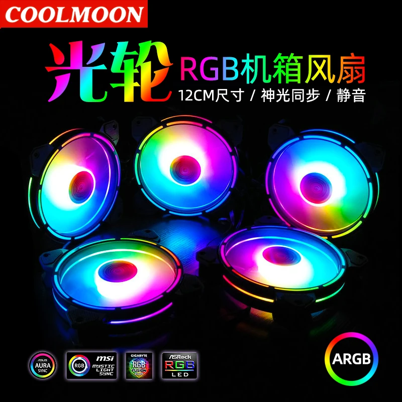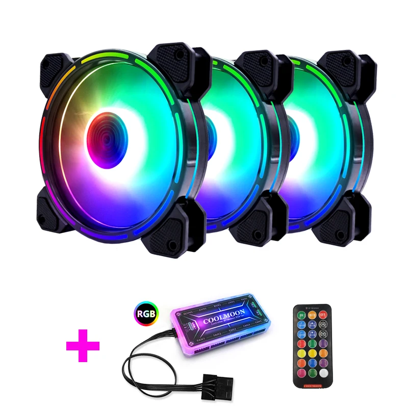 Comprar Coolmoon-ventilador RGB con mando a distancia IR, Enfriador de CPU y radiador, silencioso, 120mm