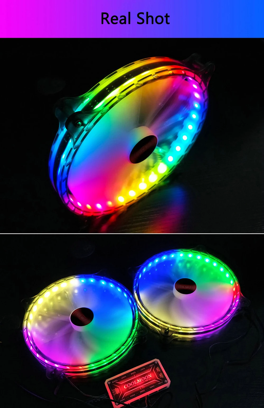 1. La interfaz del ventilador es de 6 pines, que debe usarse con el controlador estándar Coolmoon o el controlador de música.