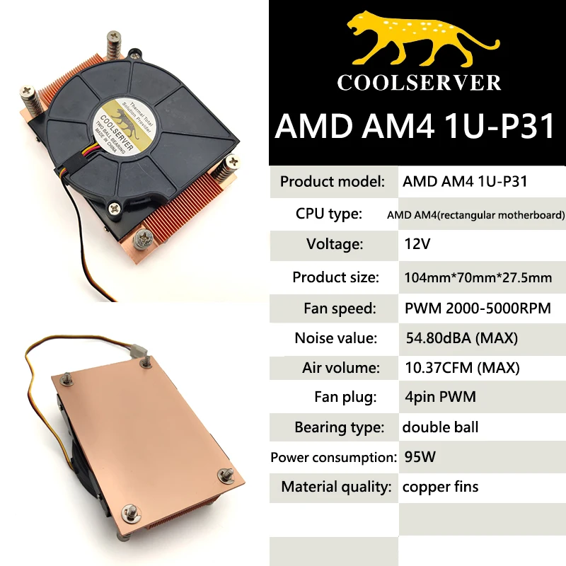 Comprar COOLSERVER 1U P32 P31 CPU Cooler Servidor de ordenador de escritorio radiador ventilador controlado por temperatura para AMD AM4 Air Cooler