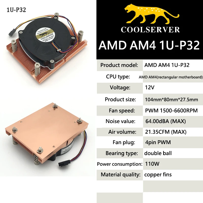 Comprar COOLSERVER 1U P32 P31 CPU Cooler Servidor de ordenador de escritorio radiador ventilador controlado por temperatura para AMD AM4 Air Cooler