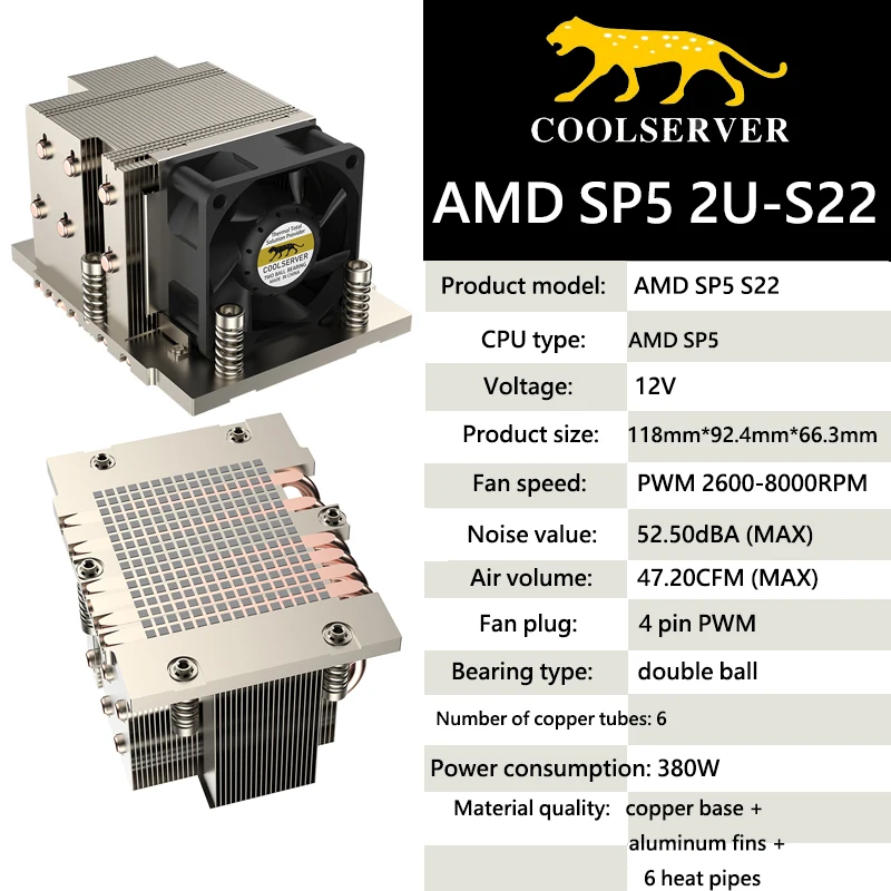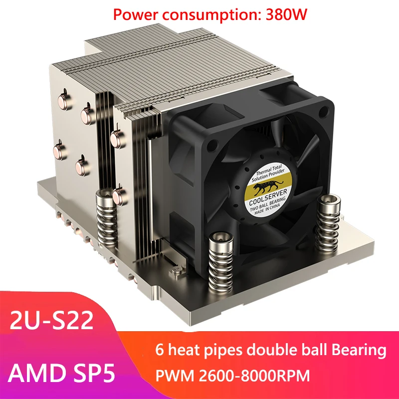 Comprar COOLSERVER AMD SP5 2U-S22 6 tubos de cobre 380W servidor CPU enfriador estación de trabajo procesador enfriador radiador 4PIN PWM ventilador para AMD SP5