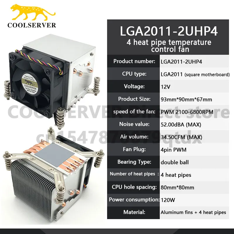 Comprar COOLSERVER-enfriador de CPU 2UHP4, 4 tubos de calor, estación de trabajo, radiador silencioso PWM 4PIN 120W para Intel LGA 1151 1155 2011