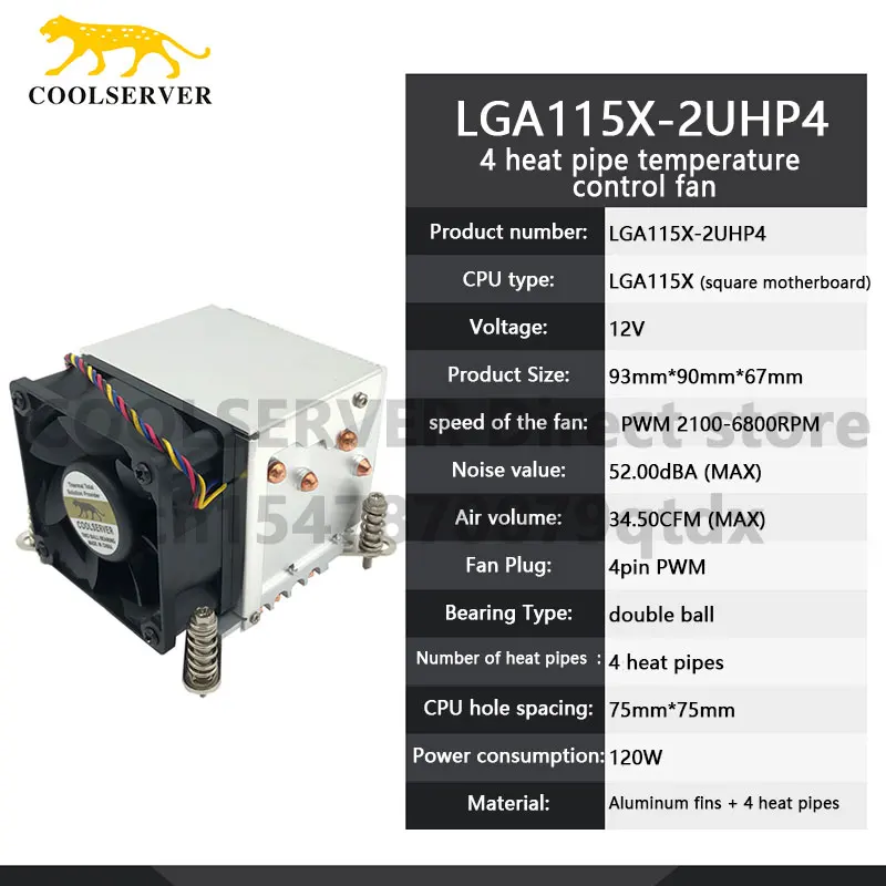 COOLSERVER 2UHP4 4 Heatpipe 2U servidor CPU Cooler 120W estación de trabajo